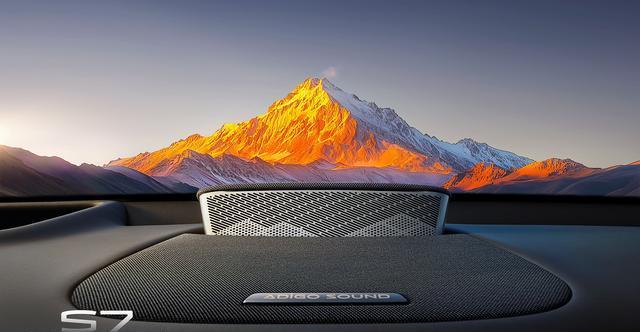 操作台部分设计有较大尺寸的无线充电面板,估计会自带风冷散热功能。此外,中控台中央的中置扬声器采用可升降式设计,极具仪式感。