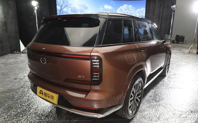 在尾部造型上,车顶装设有小规格的扰流板与高位刹车灯。熏黑处理的尾灯组运用了环绕式设计,点亮时极具辨识度。梯形的牌照框区域为内凹式设计,这一设计增添了车尾的层次感。下包围处配备的粗壮灰色防擦板,进一步强化了力量感。
