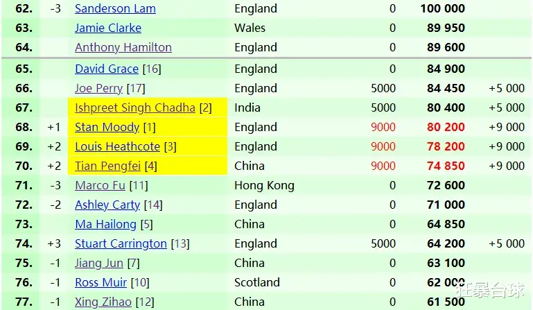 穆迪连续战胜了达仔和多特,保底到手9000积分,另外根据目前的单赛季排名情况来算,需要保级的球员都不能打红包赛,所以这意味着在保级名单的单赛季排名中,接下来已经不会有人能够威胁到穆迪了,所以穆迪已经没有失去职业资格的风险了,包括辛格·查德哈也差不多,当然他两现在都是8万多点的积分,还需一万积分才能冲进前64,这是比较困难的,所以他俩最终的结局,可能大概率就是依靠保级名单的单赛季前四,去重新获得未来两个赛季的职业资格,积分清零重新开始,而非冲进前64保住现有的积分。