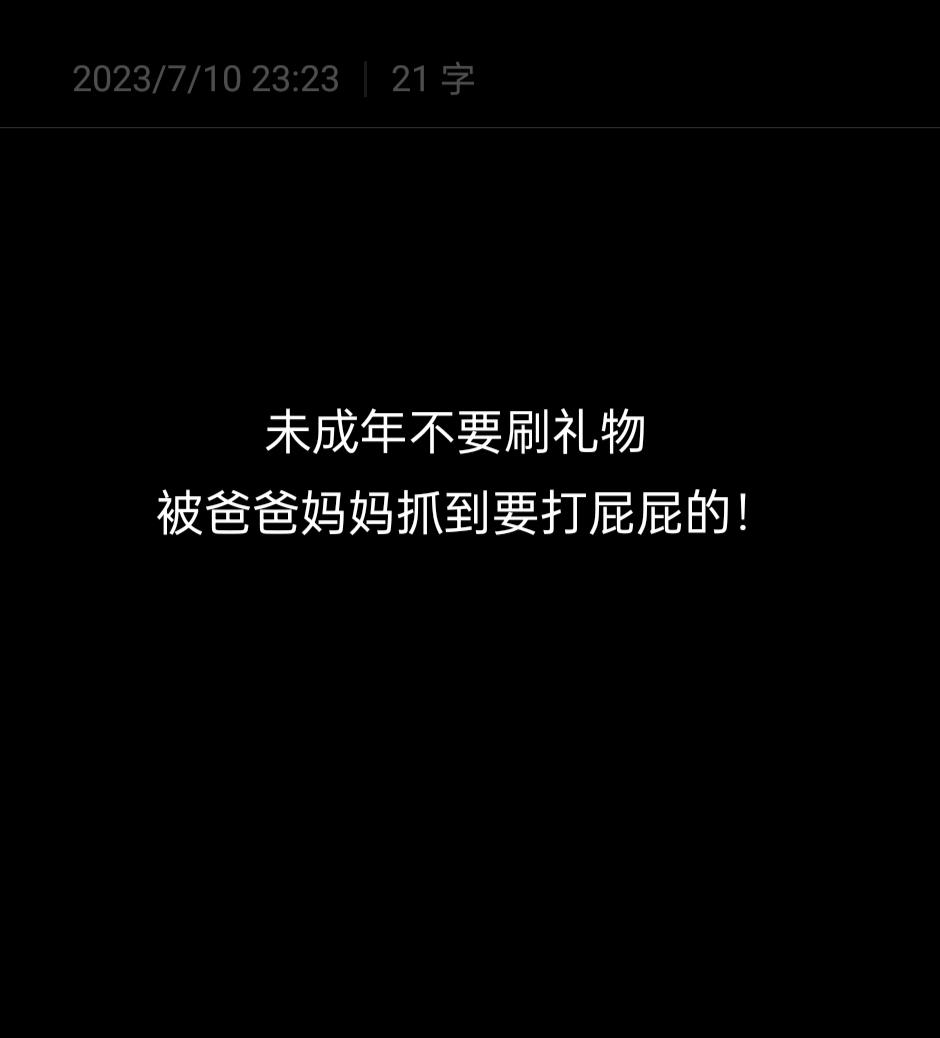 又到了该提醒未成年小朋友 别刷礼物的时刻了!要听话奥! 下次抓到打屁屁!