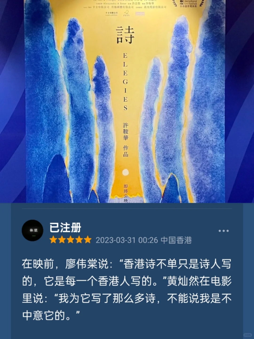 「她拍的题材,是所有香港事物中最没人知道的,就像在黑暗的广场上,一盏聚光灯聚焦于一棵小树下的几株青草」 🎦影名:《诗》 🐾类型:纪录片 ⌚时长:101min · 电影主要分为三个部分 第一部分是记录许鞍华导演亲自拜访多位香港诗人好友 如淮远、饮江、邓阿蓝、马若等会友论诗✍🏻 并借用资料影像及照片📷追怀已然离逝的西西和也斯 · 而整部电影的重点就落在第二部分已移居深圳🏙️性格自由率性的诗人黄灿然及第三部分在台湾忙于讲学兼顾家庭,积极入世的诗人廖伟棠 · 黄灿然:“想要做诗人,就要做好面对一无所有的准备” 廖伟棠:“诗在一个人最无助、最失败或是最孤独时才真正发挥作用” 许鞍华:“诗是她护身符,能够化解忧闷愁烦” · 香港诗或香港诗人宛如边缘的小草🌿在生活压迫挣扎的同时,展现出顽强的生命力🔥