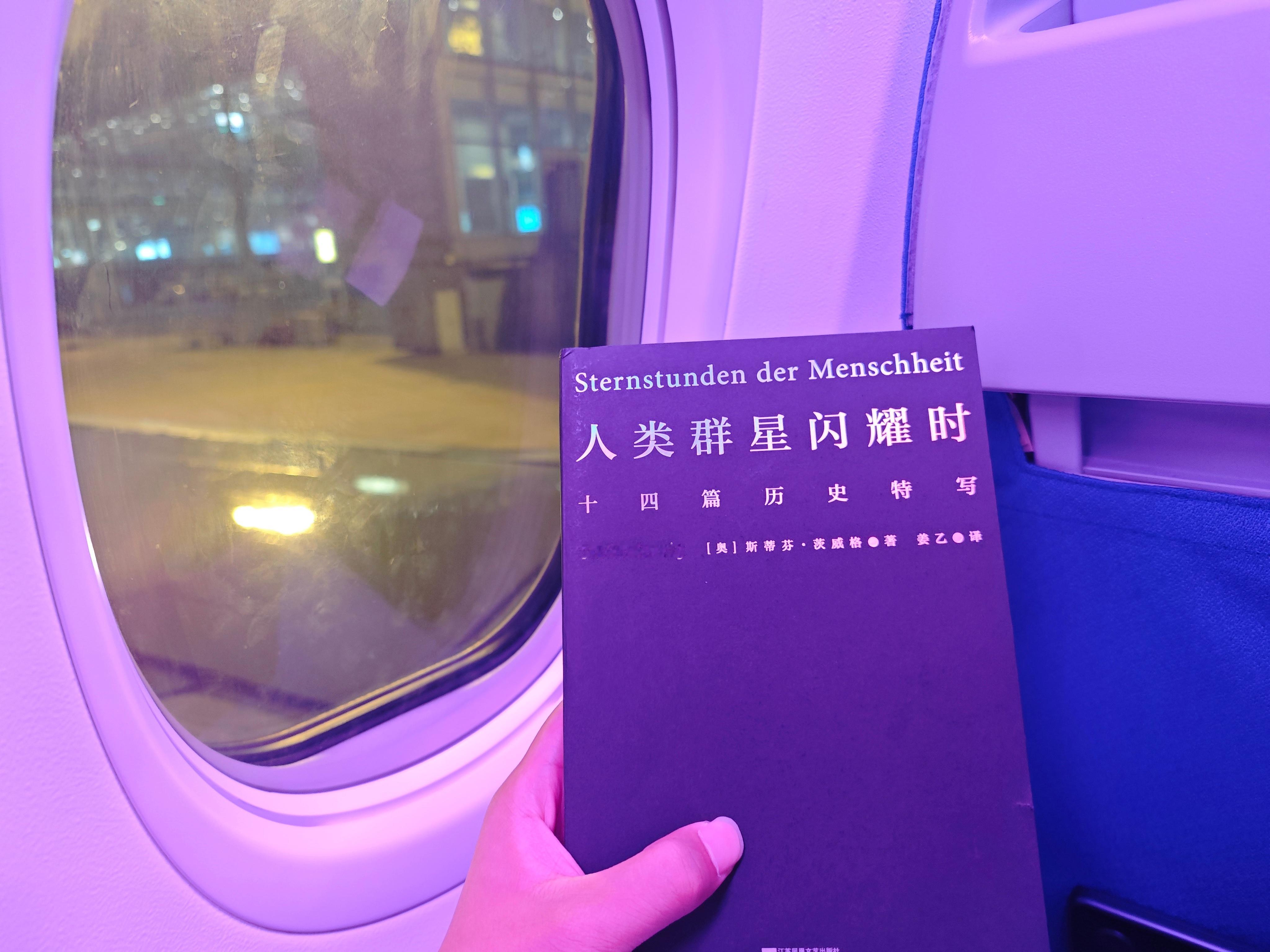 两小时无网络、无小电视的飞机,充充电,看雷总推荐的《人类群星闪耀时》~