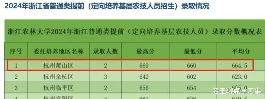 不仅如此,浙江农林大学还录取了一位669分的定向生,这个分数在浙江省内足以稳进浙江大学。