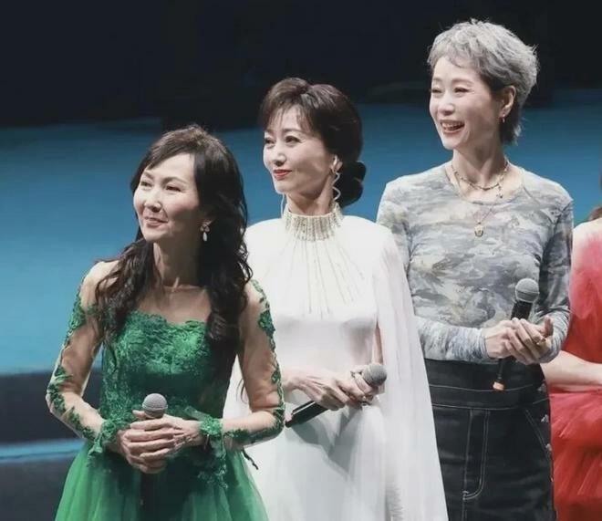 看着她们站在一起,岁月似乎在她们脸上留下了些许痕迹,但那眼中的光芒依然如初。她们微笑着,互相交流着,仿佛在回忆着曾经一起拍戏的点点滴滴。