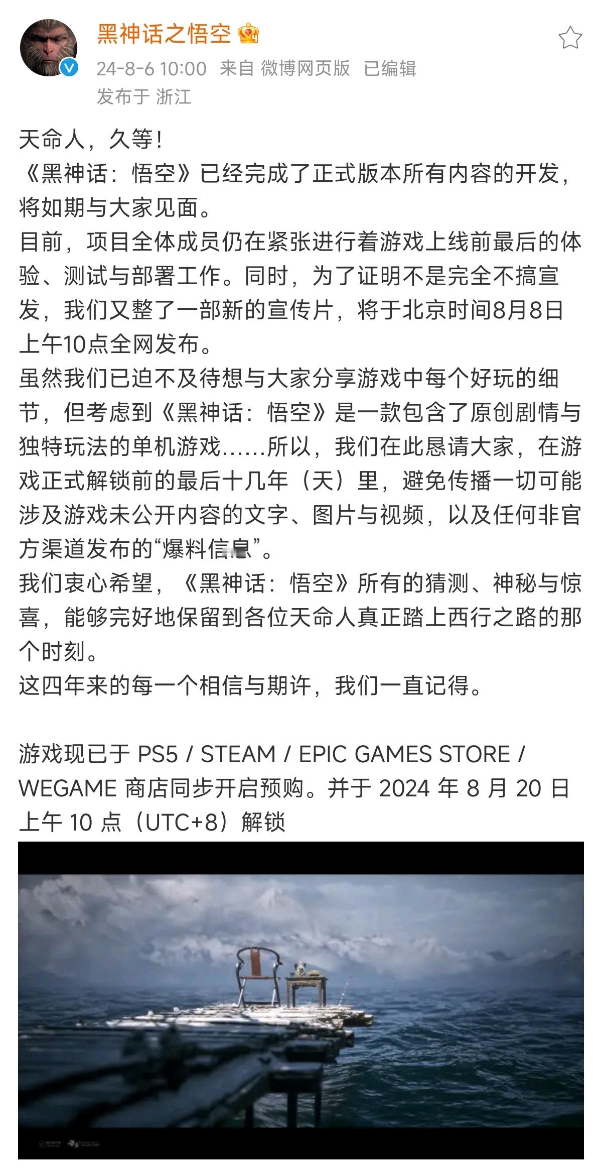 《黑神话:悟空》发布新预告片