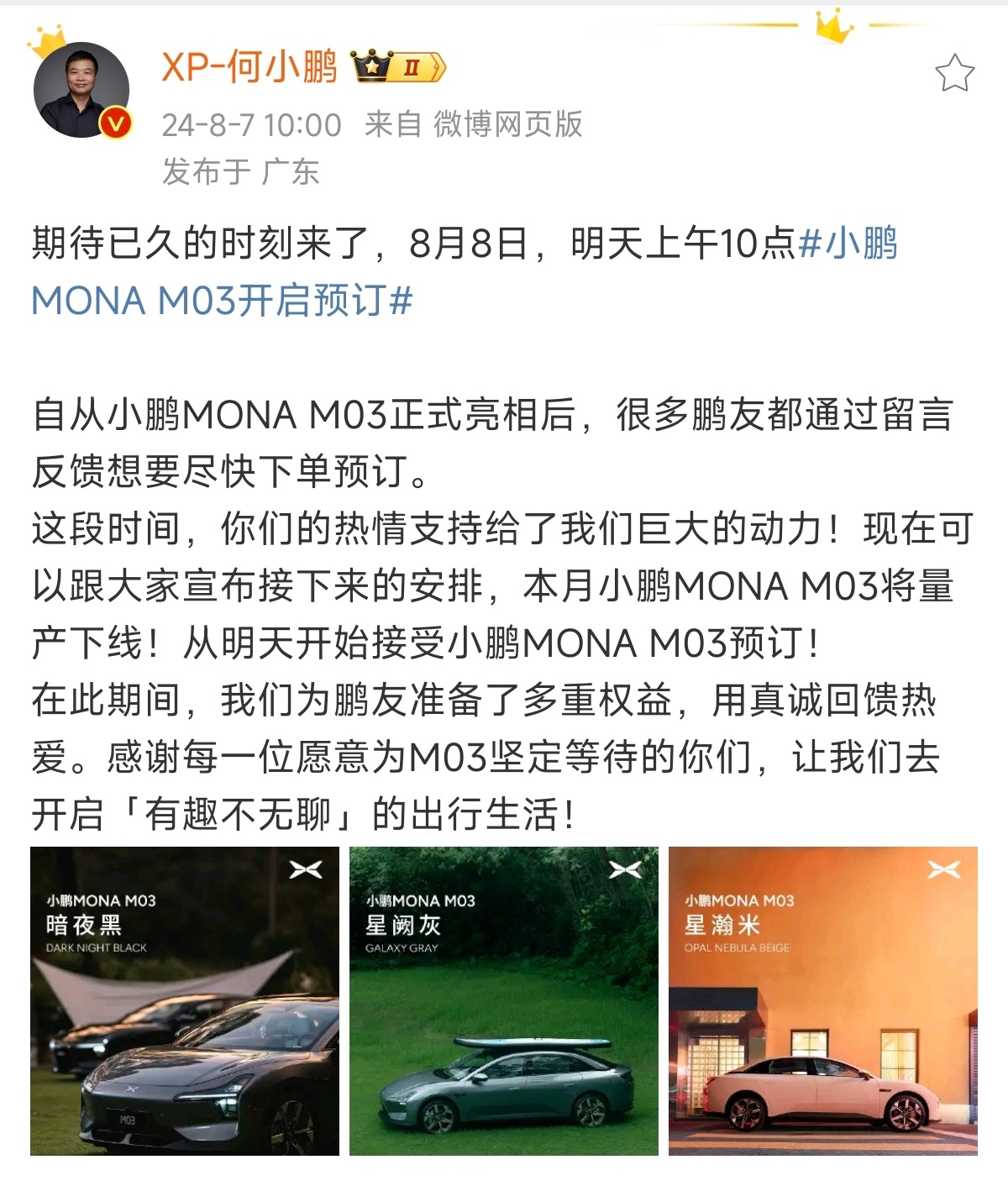 小鹏MONA 03开启预定