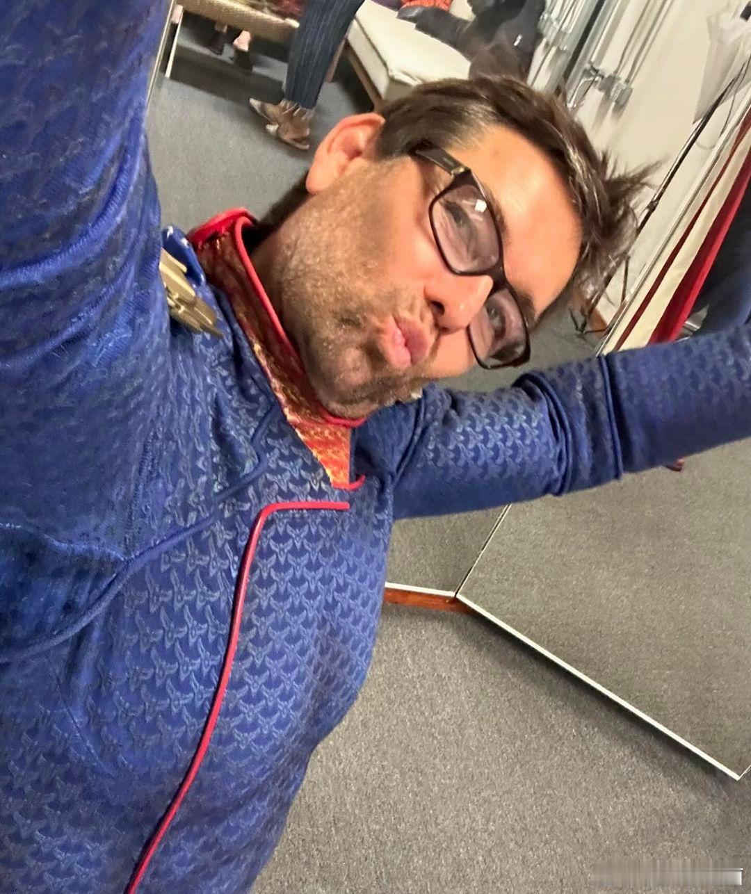 #黑袍纠察队#祖国人AntonyStarr晒与超英服设计师合照,配文「好事在前