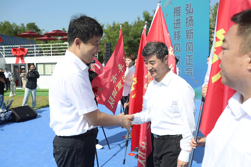 滨州市委常委、宣传部部长冷兴邦为各县(市、区)移风易俗宣讲队授旗