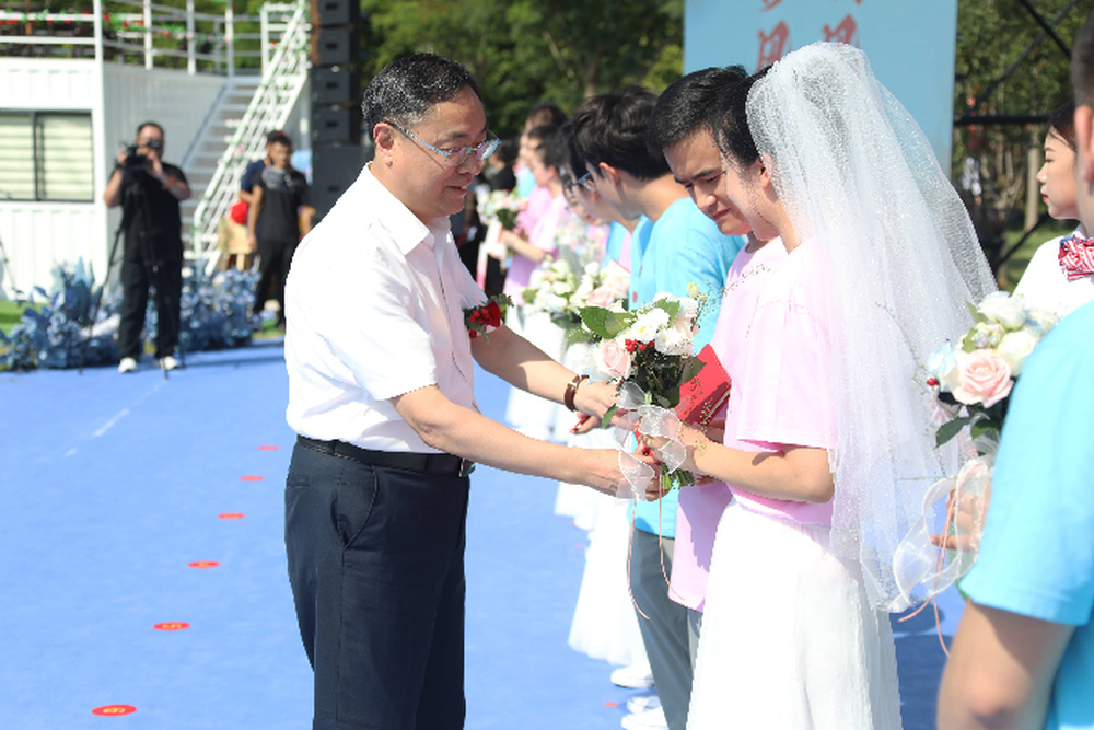 参加此次集体婚礼的新人王程在采访中说道:“非常荣幸能够参加此次集体婚礼,这是我们一生中非常难忘的珍贵体验,非常有意义。作为新时代青年,应当树立新的婚恋观、价值观,带头破除陈规陋习。我们愿意做‘移风易俗’的倡导者、实践者,通过参加集体婚礼,为爱情减负,为幸福加分。”