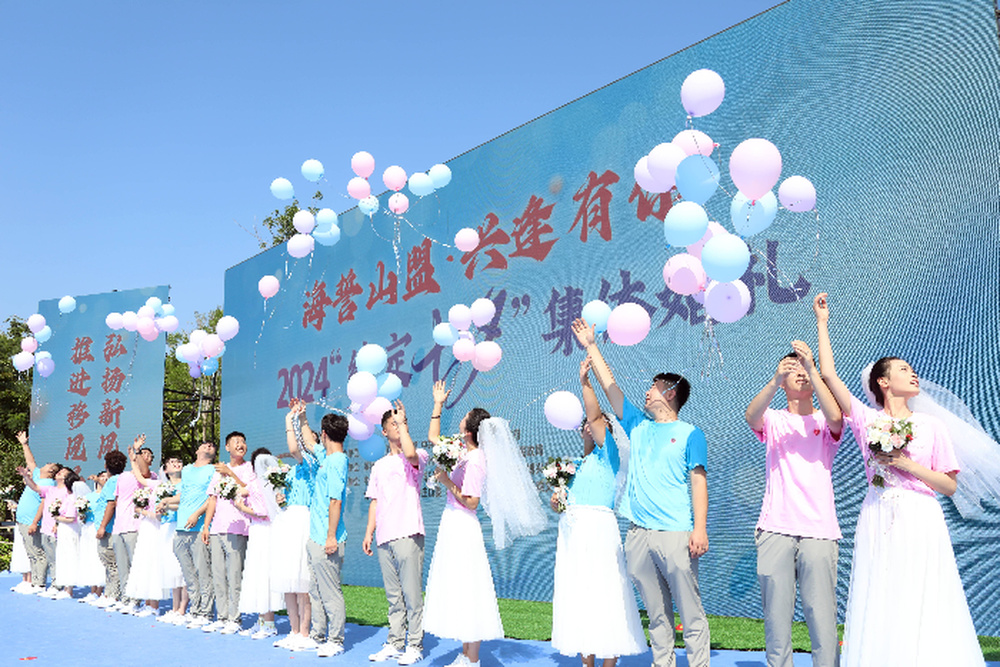 8月10日是中国传统节日七夕节。当天,滨州市2024移风易俗宣传月启动仪式暨“海誓山盟·兴逢有你”缘定七夕集体婚礼活动在乔庄镇打渔张爱情主题文化公园举办。10对新人在亲朋好友共同见证和祝福中,享浓情七夕,倡文明婚俗,树时代新风,共赴浪漫之约。