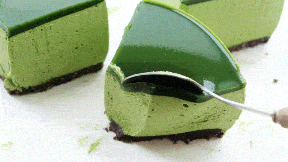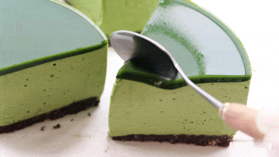 抹茶慕斯蛋糕空气般轻盈的口感抹茶控太喜欢啦#嗨夏吃货节##唤醒味蕾挑战#