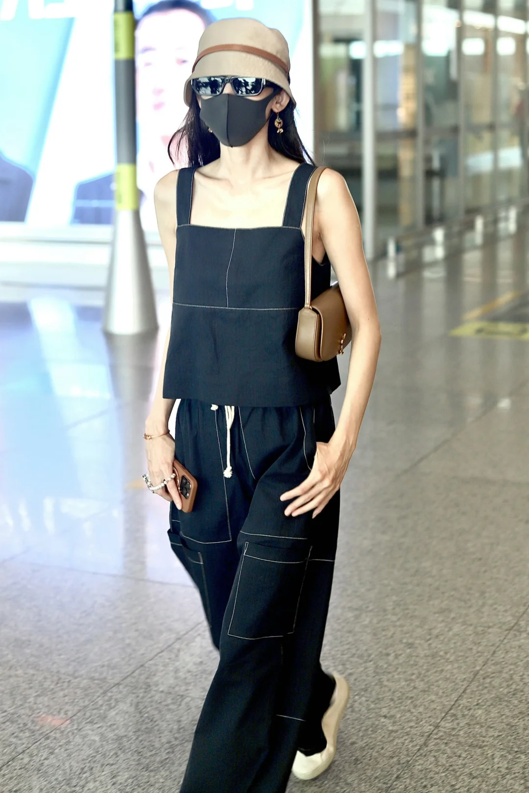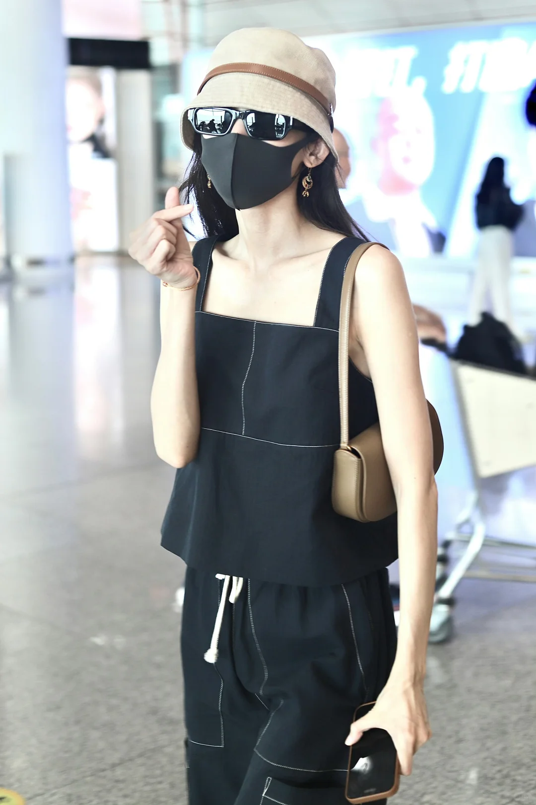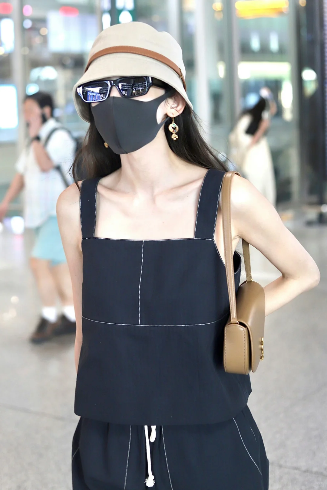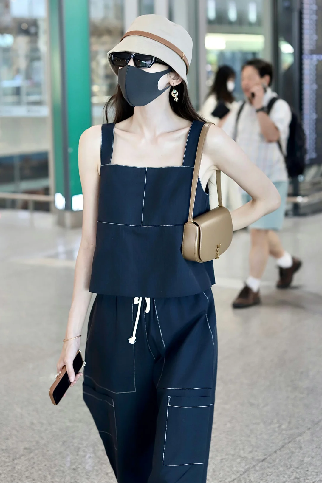 ✨娜扎📆240629 机场穿搭~ 前往录制新一期《旅行任意门》~ ▶️Look解析 渔夫帽 | Saint Laurent LE CASSANDRE 帆布渔夫帽 太阳眼镜 | Saint Laurent 墨镜 包包 | Saint Laurent VOLTAIRE皮革迷你肩背包 鞋子 | Saint Laurent 印花做旧运动鞋 耳环 | LA2L 天然宝石吊坠耳环 套装 | Kloke 黑色缝线棉麻吊带上衣和宽松长裤 手机壳和手机链 | PYNANA翡娜娜 -