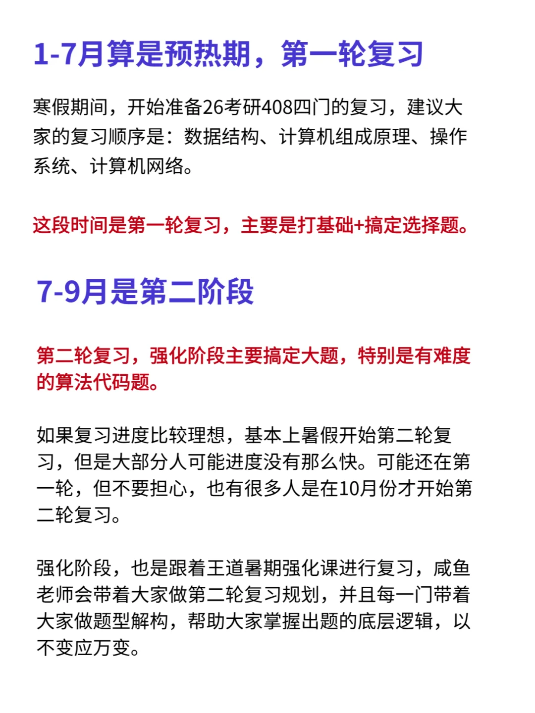 1-7月算是预热期,第一轮复习寒假期间,主要是打基础+搞定选择题。
