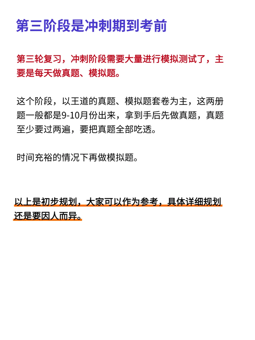 第三阶段是冲刺期到考前,冲刺阶段需要大量进行模拟测试了,主要是每天做真题、模拟题。