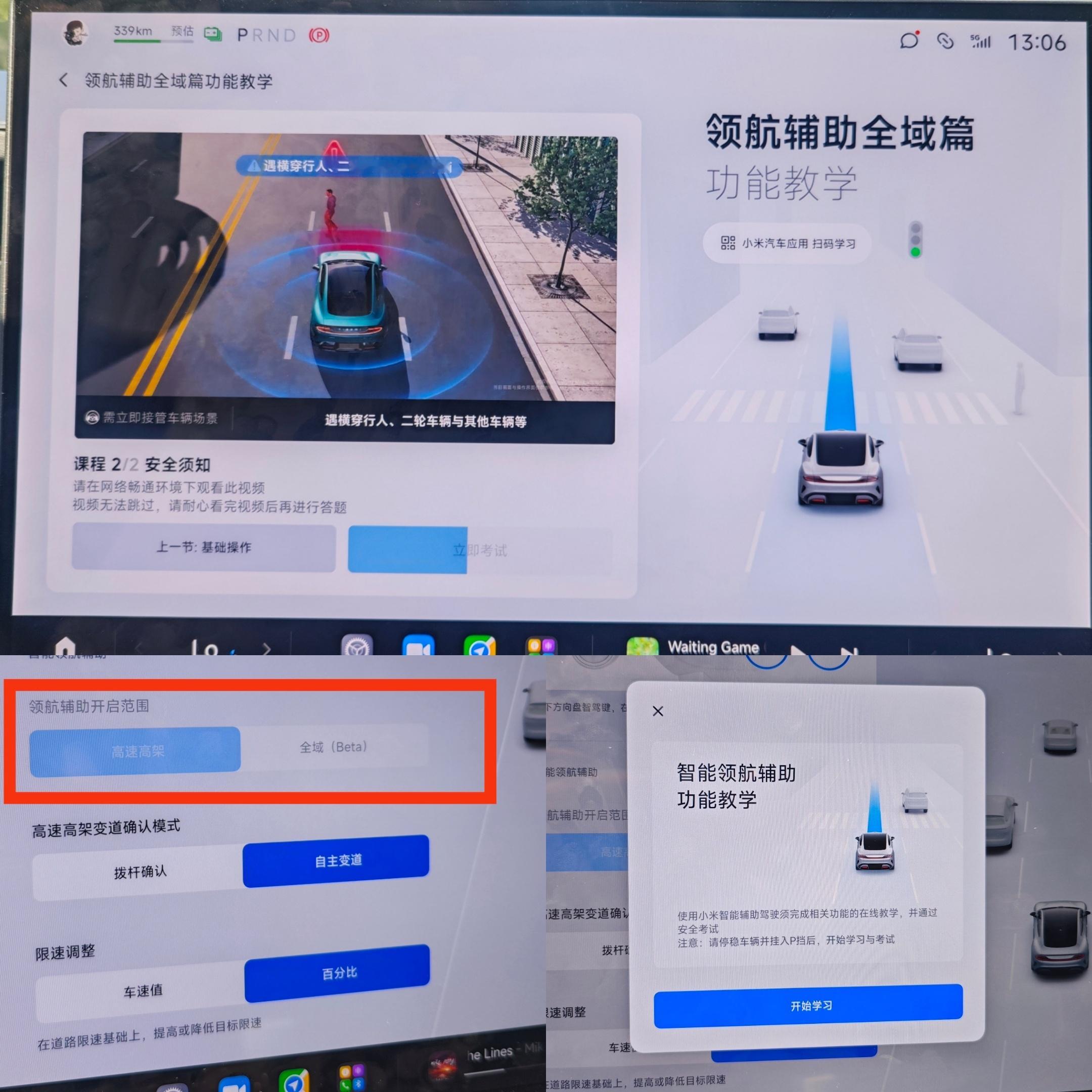 全域的领航辅助驾驶需要智驾学习,稍后去感受一下(刚考完试)。