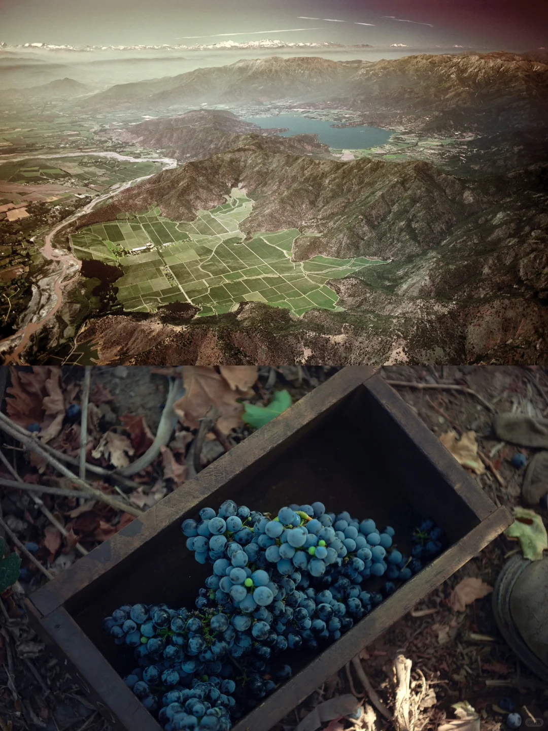 因为家里生意上的关系有很多南美的朋友,每次大家一起在亚洲出差都会跟我分享当地的人文风土各种故事,常常说他们假期旅行会到周边的乌拉圭、智利去度假。因此在心里一直对南美洲有天然的好感,看到红蔓庄园位于迈坡谷(Maipo Valley)从天空俯拍的照片时,马上联想到这种壮丽宏大的自然景观不就是朋友一直在说的南美风光吗!