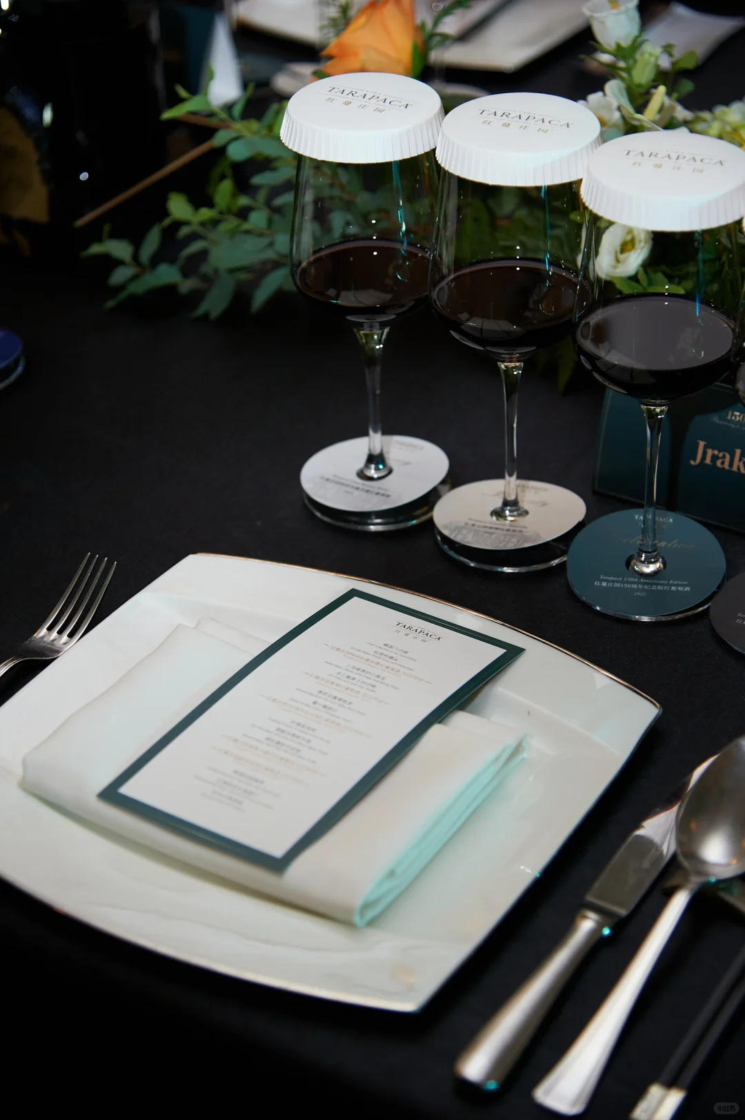 今天去了由智利红蔓庄园(Vina Tarapaca)首席酿酒师Sebastian Ruiz主持的150周年葡萄酒品鉴大师班和庆典晚宴。