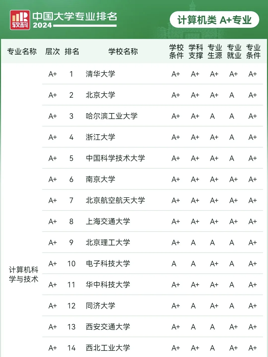 计算机专业排名出锅了,软科这次科大独领风骚,其它大佬们呢?难道都在练内功?