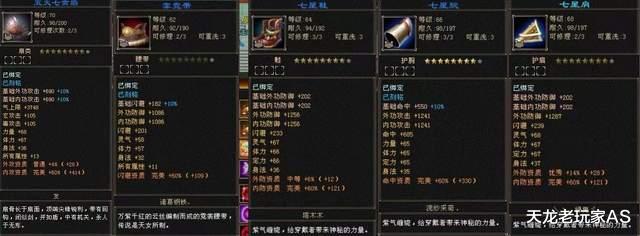 全套闪亮的60天龙套,之所以选择天龙套主要是因为天龙套部件没有戒指护符,最大限度保证血量的同时,还不影响输出。