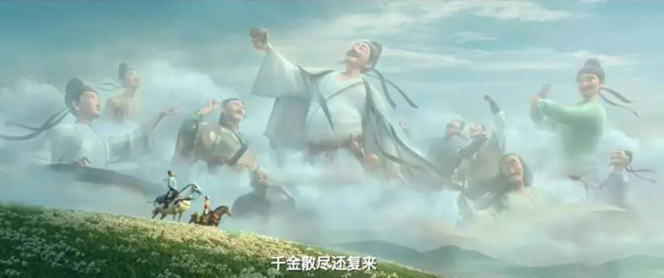 年近不惑的李白,踏上了前往嵩山的旅途,拜访好友元丹丘。二人对坐,美酒相伴,唱和之间,李白吟咏出著名的《将进酒》,在悲喜交织的旋律中,展现出不畏失意、勇于追求自我价值的强烈抱负,以及对生命意义不懈探索的渴望,情感酣畅、淋漓尽致,一句“天生我材必有用,千金散尽还复来”成为古今无数人自我激励的豪言壮语,照亮了人生低谷的至暗时刻,给予人们前行的力量与勇气。