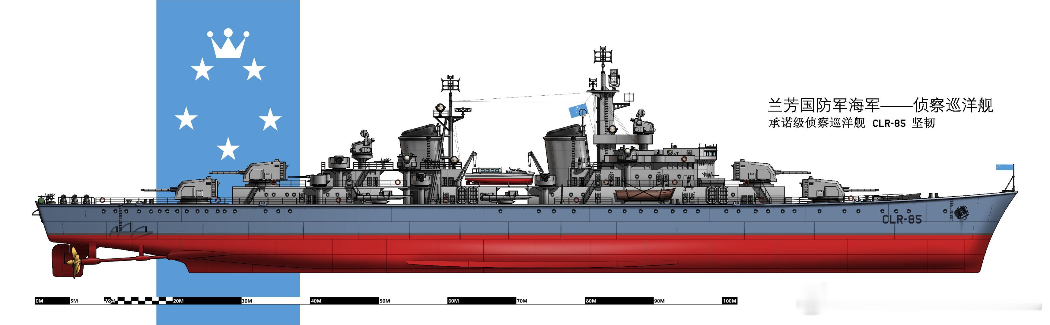 在这一情况下,结合1936-1938年兰芳国防军与欧洲的法国、意大利、西班牙等国海军进行交流了解到的有关情况,兰芳国防军决定以质取胜,排水量在4000吨上下的大型驱逐舰或超轻型巡洋舰,带领兰芳的驱逐舰支队同日军水雷战队对抗,新舰整体上应具备防御驱逐舰常见火炮的能力,火力上与轻巡洋舰看齐;1939年初,兰芳国防军海军选定了海军设计局提交的一份4500吨方案,该方案可以看作是海军上一世代的碧瑶级轻巡洋舰的现代化升级版,有着堪用的船壳化主装甲带,因此该舰被定位为侦察巡洋舰(CLR)而非驱逐领舰(DDL),向海军造船厂下达了订单,是为承诺级侦察巡洋舰。