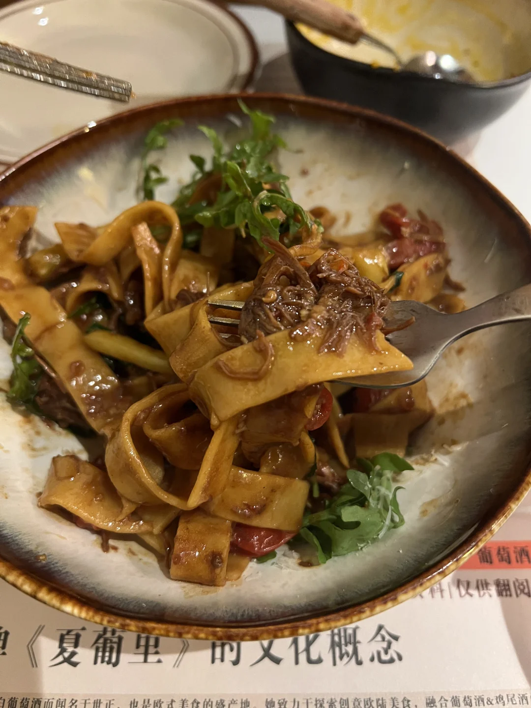 p8烩牛肉宽面(牛肉真的炖的好入味 酱汁很好吃 符合中国宝宝的胃 里面有芦笋小番茄口感丰富