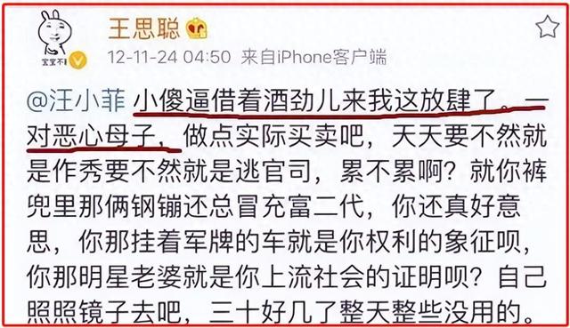 王思聪曾在网上公开揭穿,汪小菲根本就没有多少资产,富二代的身份也造就没有了。