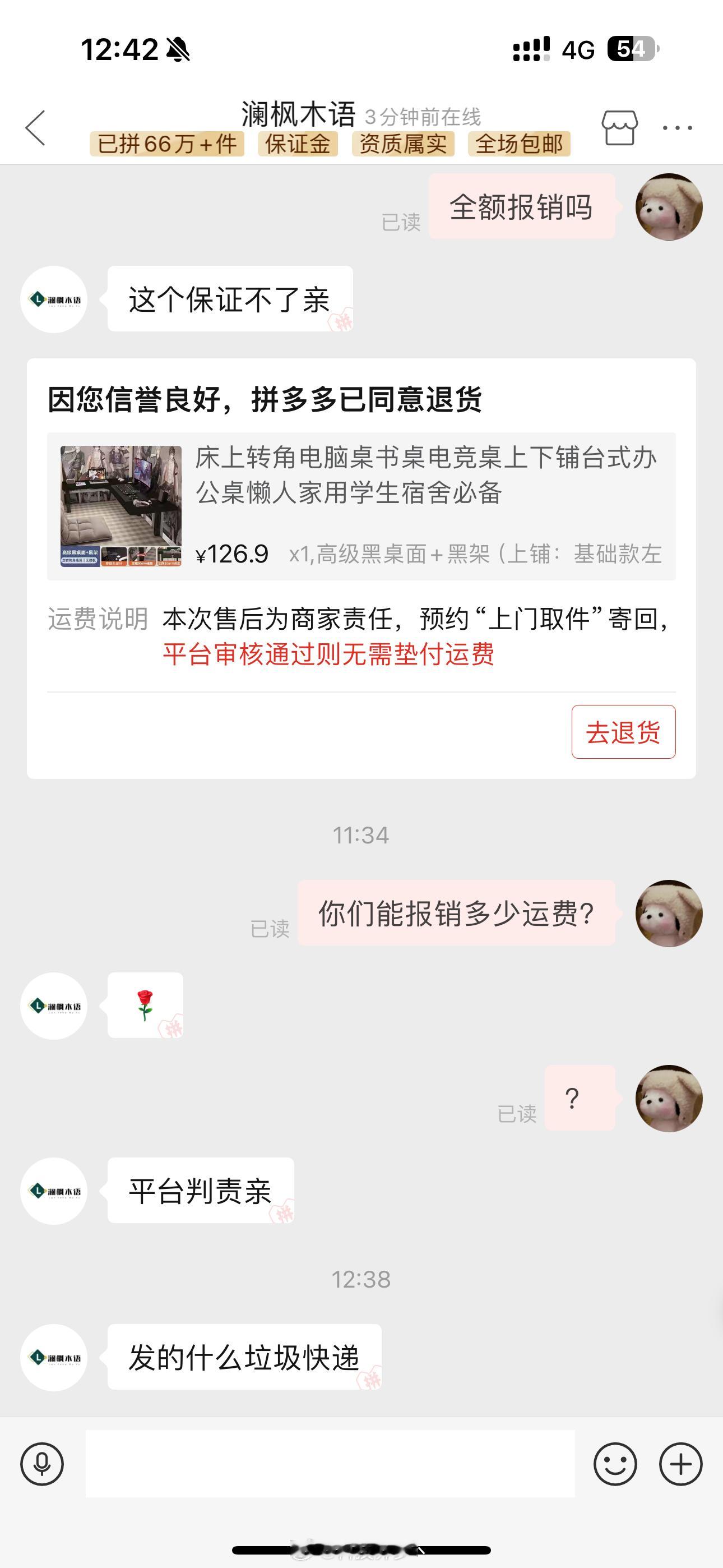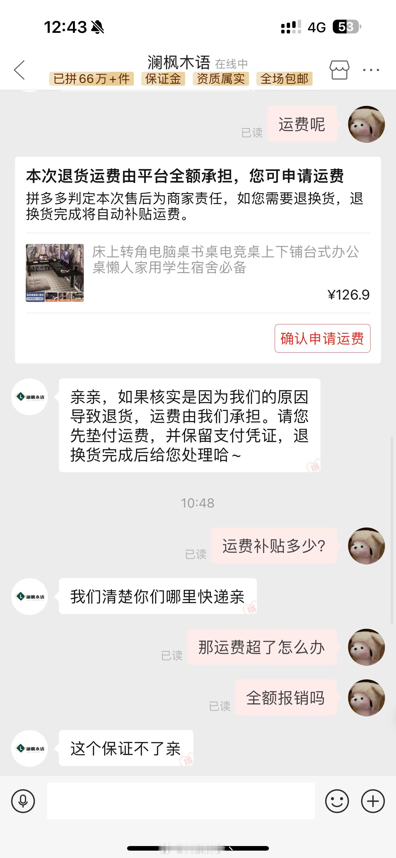 买个桌子商家发错了款式,商家还不肯说全额报销运费,拼多多重拳出击直接干了他51块钱运费,爽到了[舔屏][舔屏][舔屏]