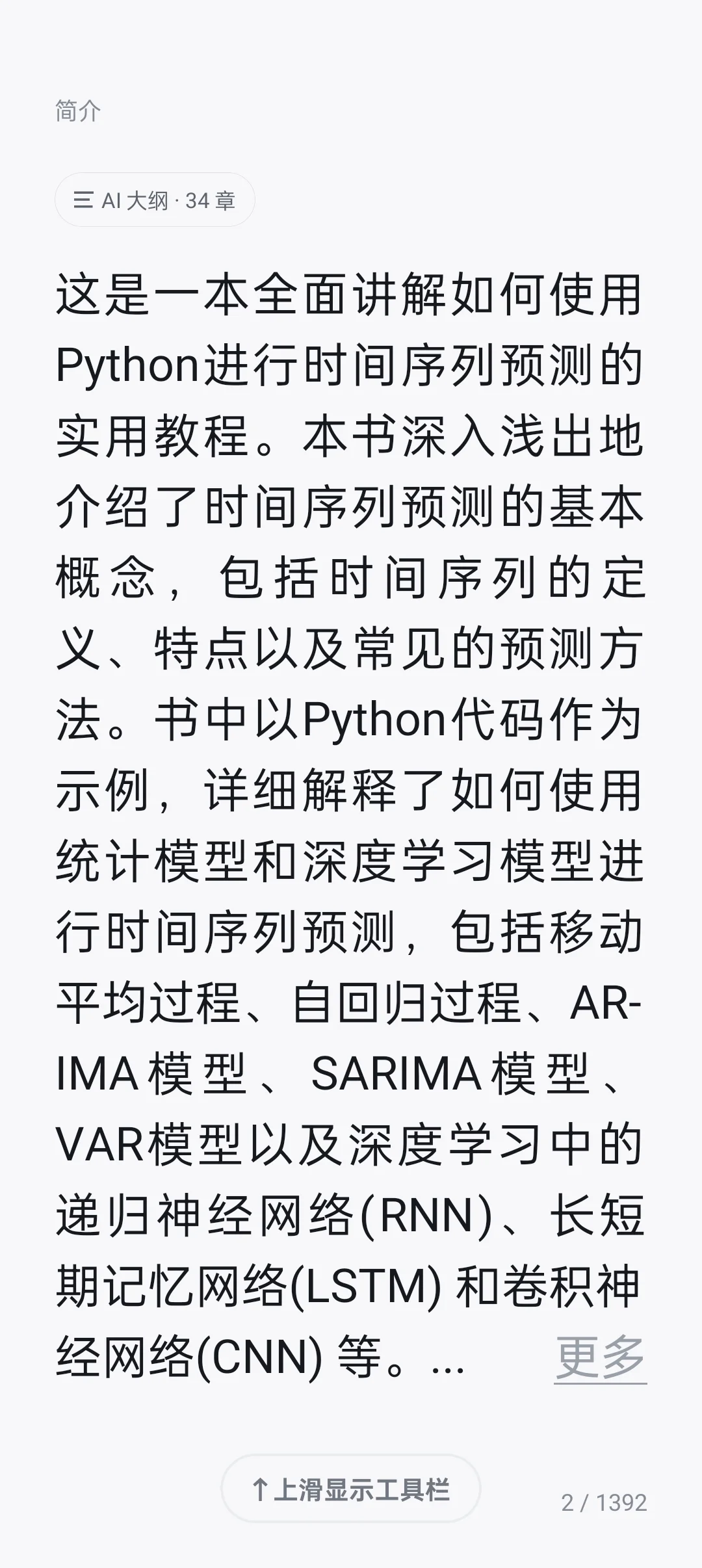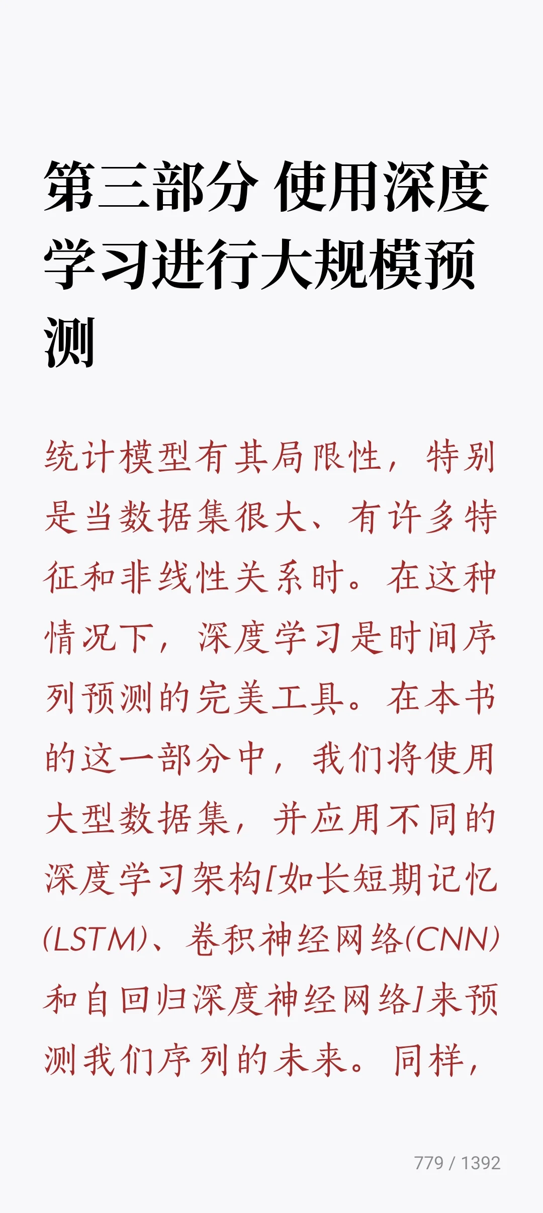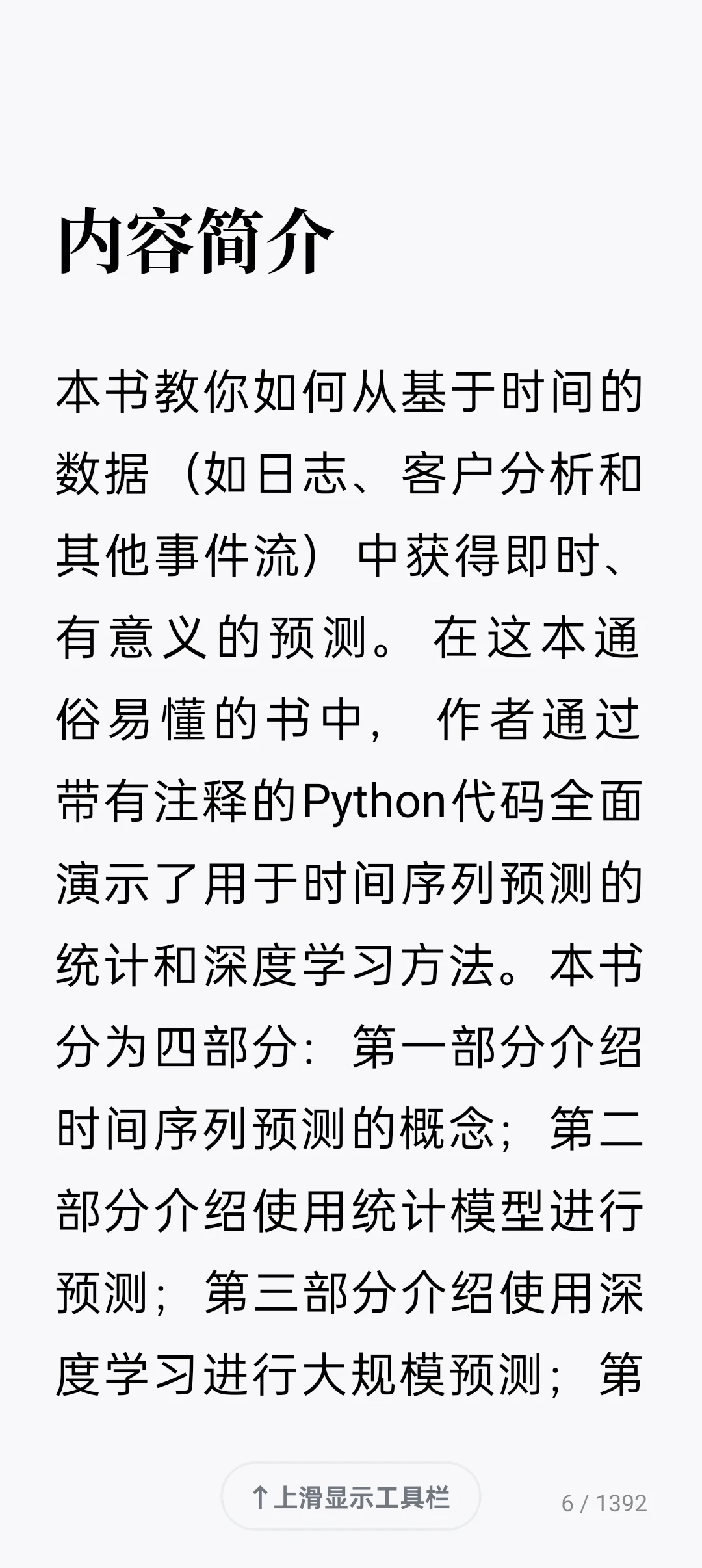 本书教你如何从基于时间的数据(如日志、客户分析和其他事件流)中获得即时、有意义的预测。 在这本通俗易懂的书中,作者通过带有注释的Python代码进行全面演示,你将学习用于时间序列预测的统计和深度学习方法。 通过跟随书中的实例锻炼你的技能,你很快就会准备好建立自己的准确、有洞察力的预测。