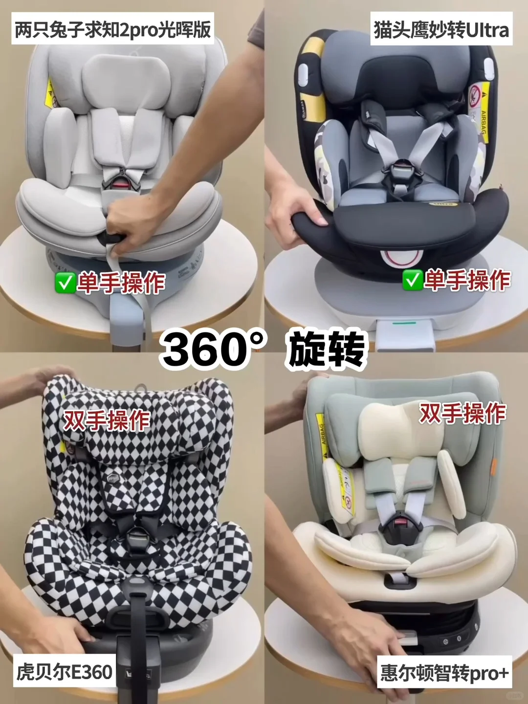 选择单手360度一键旋转90度悬停的,上下车轻松抱娃,可以一边抱娃一边操作会更方便。智能安全座椅还带语音和APP,更方便,解放双手,喜欢科技感带娃的宝妈可以冲