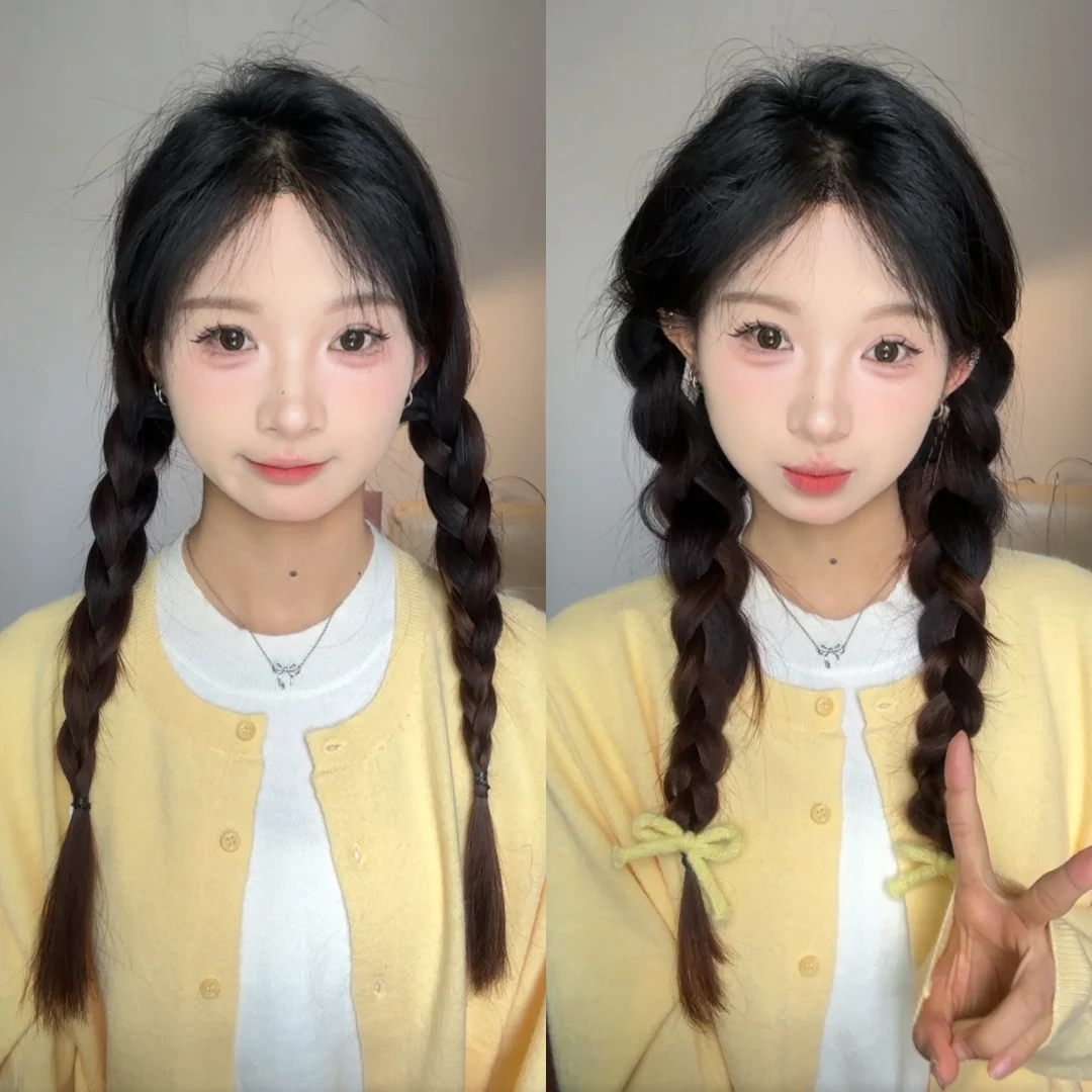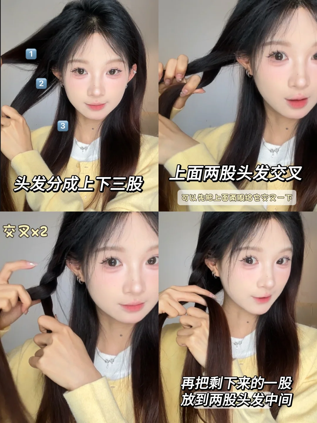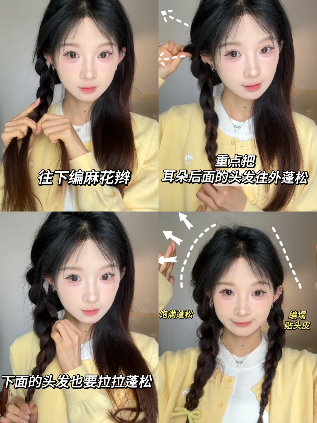 往下编麻花辫 这样编出来的麻花辫真的很显脸小!
