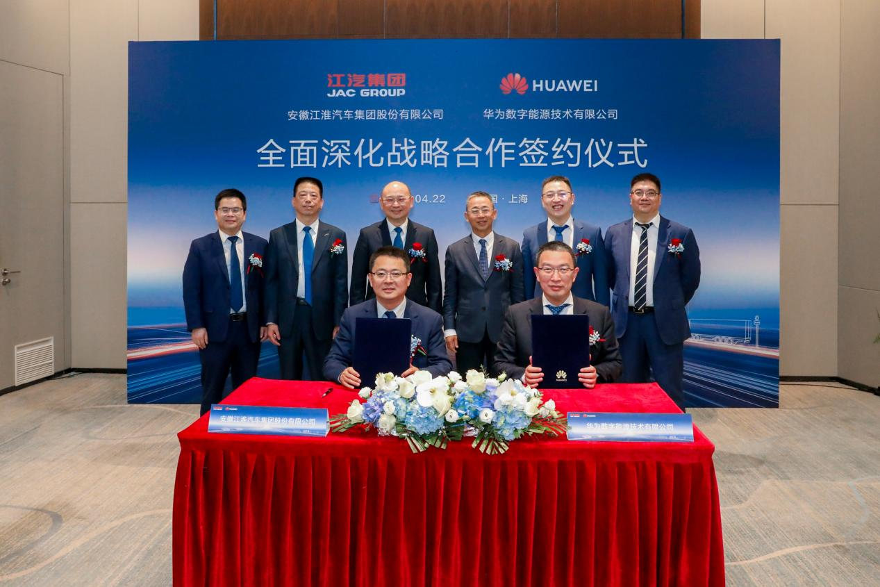 4月22日,江汽集团与华为数字能源在上海签署全面深化战略合作协议。双方将重点在新能源汽车车型/平台技术开发与应用、智能电动运动域部件应用与联合定义、开发制造及联合市场拓展、新能源汽车充电网络建设与运营、重型商用车超快充技术联合开发、新能源汽车国际化等领域展开全面深入合作,以共同打造有竞争力、追求极致用户体验的产品,共建产业生态,共同推动新能源汽车产业的发展。