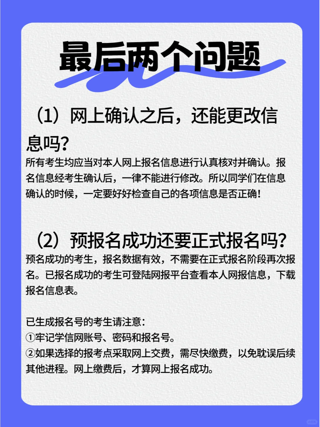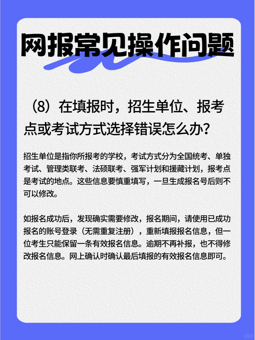 25考研预报名在9月24日正式开始,上次给大家分享了: . ① 网报所需资料 ② 网报常见填写问题 ③ 网报常见修改问题 . 今天继续给大家分享: ④ 网报常见操作问题 ⑤ 网上确认相关问题 . 有需要的同学可以收藏哦