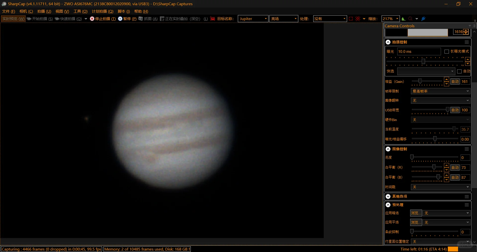 近一个月木星在凌晨的角度已经很高,近期拍摄的木星(时间由近至远)可以观察到木星的大小变化。