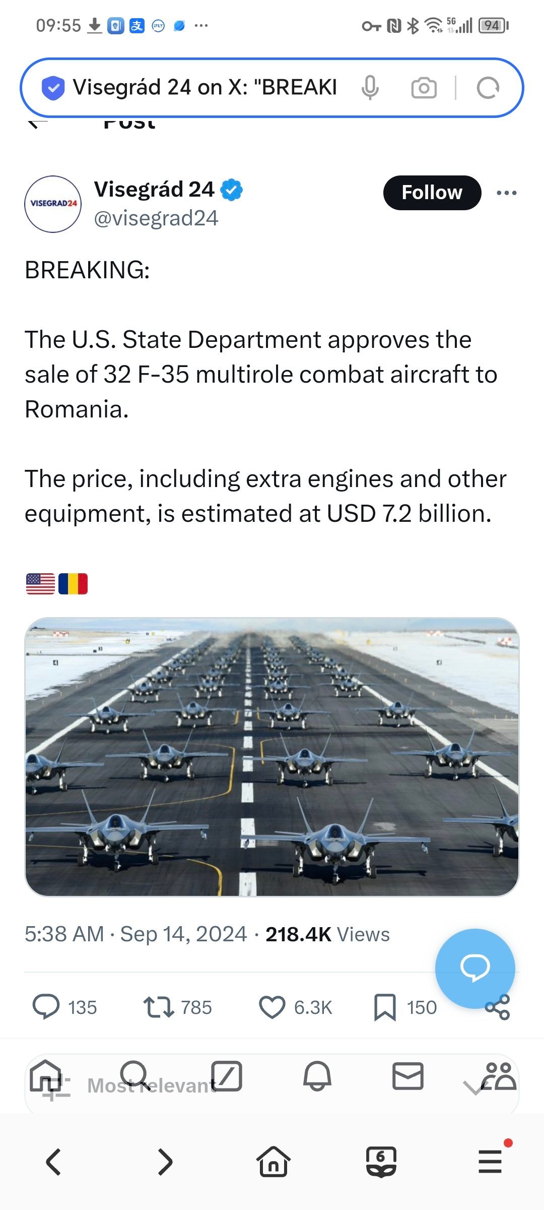 昨天,美国国务院批准向罗马尼亚出售 32 架F-35A多用途战斗机。