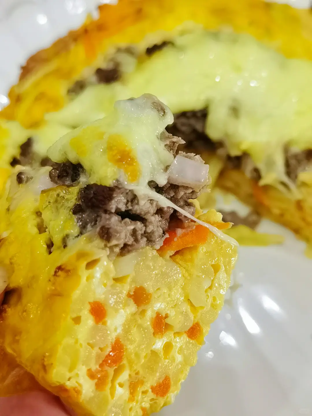 🍕外层金黄酥脆,内里牛肉鲜嫩多汁,土豆与胡萝卜的丝状交织,带来丝丝清甜与软糯,搭配上芝士的浓郁,每一口都是满满的幸福感。