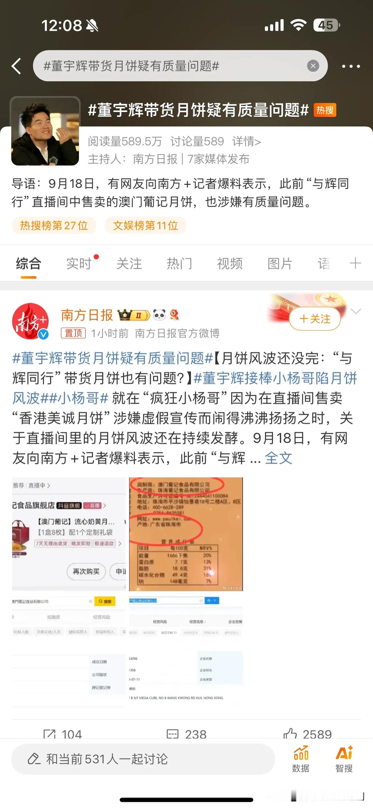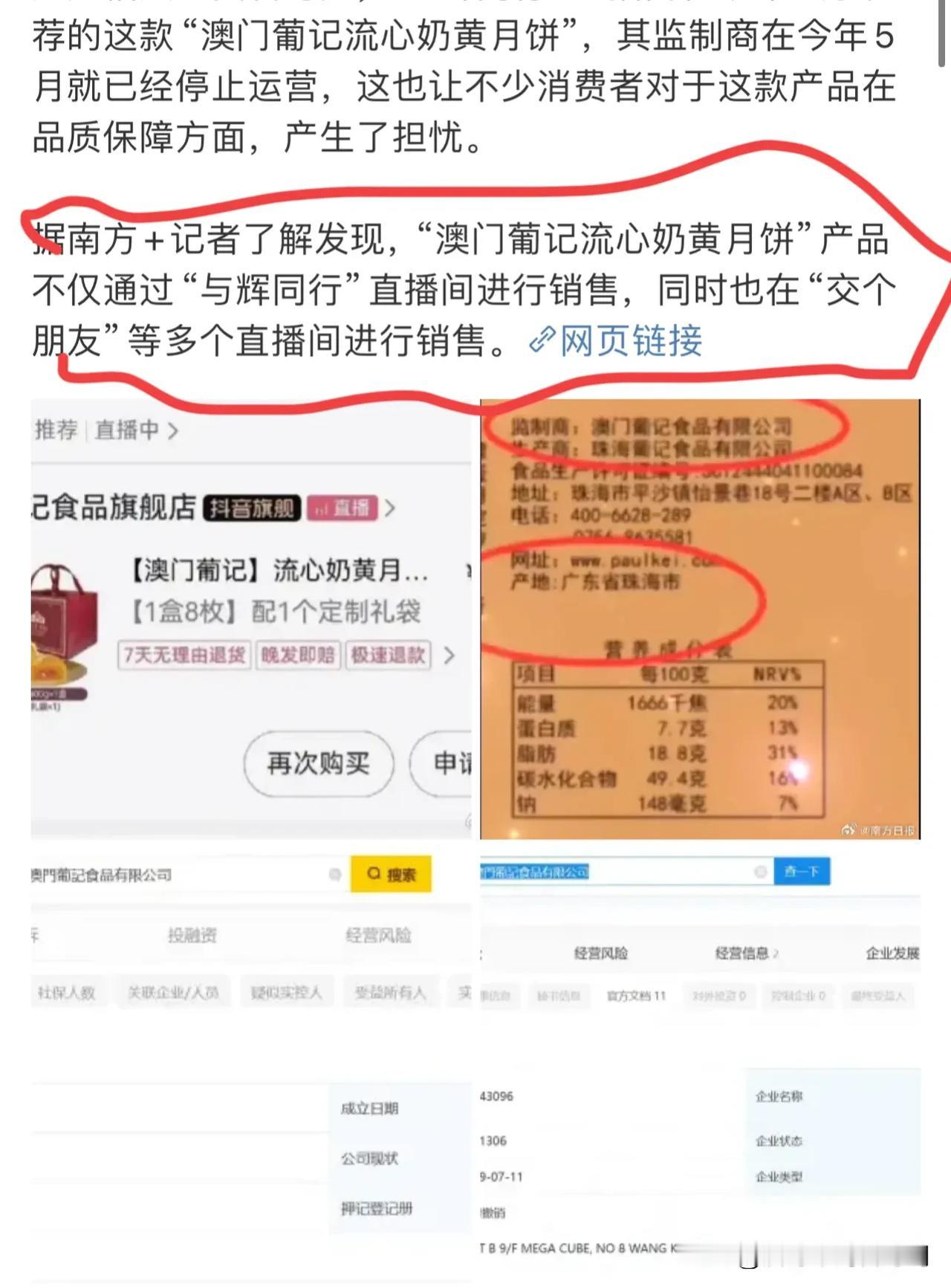 水调歌头直播间,最近选品一直被质疑! 同样的土豆儿,在不同直播间,价格相差那么多,今年产量高,按道理比去年要便宜啊! 不过土豆儿这事还没有停,顶流的月饼也被质疑出了问题,而且还上了热搜! 最起码美城月饼,质量,生产厂家经调查抖没有问题! 但是顶流卖的月饼,生产厂家就玄妙了,澳门监制,实际在珠海,注册在香港!好复杂! 更重要的是,9月在卖,5月关联厂家就休停了!另外,据媒体报道,这款月饼,交个朋友也在卖!不知道老罗会不会回应了!