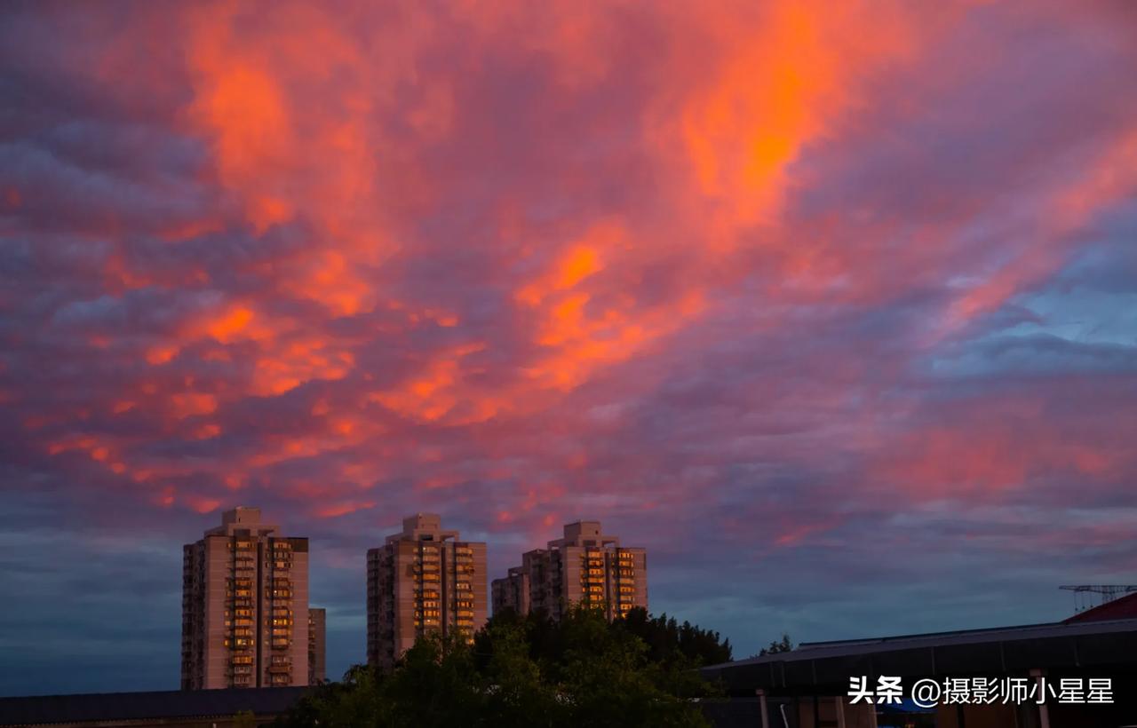 今天北京又出现了世纪晚霞!笔者顺手拍摄了这绚丽的京城霞光~ 《京城晚霞》 晚霞如火绘天际,流光溢彩映日西。 云卷云舒舞翩跹,梦萦魂绕醉心迷。 遥山隐隐融霞影,近树高楼漾彩霓。 愿驻此间永相伴,共吟风月乐悠齐。 今天也就是2024年9月20日,北京的晚霞如同火焰般绚烂地绘制在天空的边际,它流淌着的光芒溢出了丰富的色彩,映照着即将落山的太阳。云朵时而卷起时而舒展,它们在天空中轻盈地舞动着,像是在翩翩起舞。 这美妙的景色让人沉醉其中,仿佛是一场梦幻般的表演,让人心驰神往,陶醉不已。远处的山峦若隐若现,它们与晚霞的光影相互融合,形成了一幅美丽的画面。 而近处的树木和高楼,伴随着晚霞的色彩摇曳生姿,如同彩虹般绚丽多彩。多么希望时间能停留在这一刻,能够永远与这美丽的晚霞相伴。我们一同欣赏这风花雪月的美景,感受那悠然自得的乐趣!北京迎绚丽晚霞 记录北京的美 北京的晚霞👍 火烧云北京 分享北京的秋天 热议北京美景 原创摄影 @头条摄影