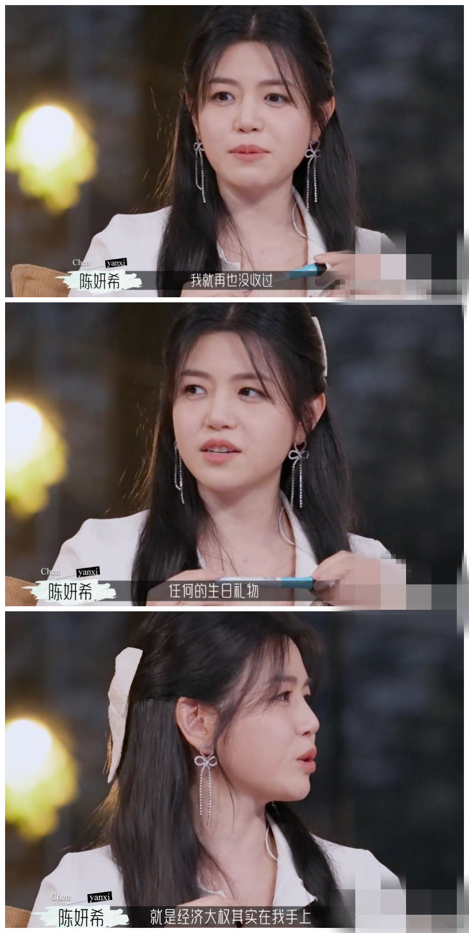 陈妍希表示,平时陈妍希把卡都交到自己手里,自己想要什么礼物自己去挑,自己去选的呢!