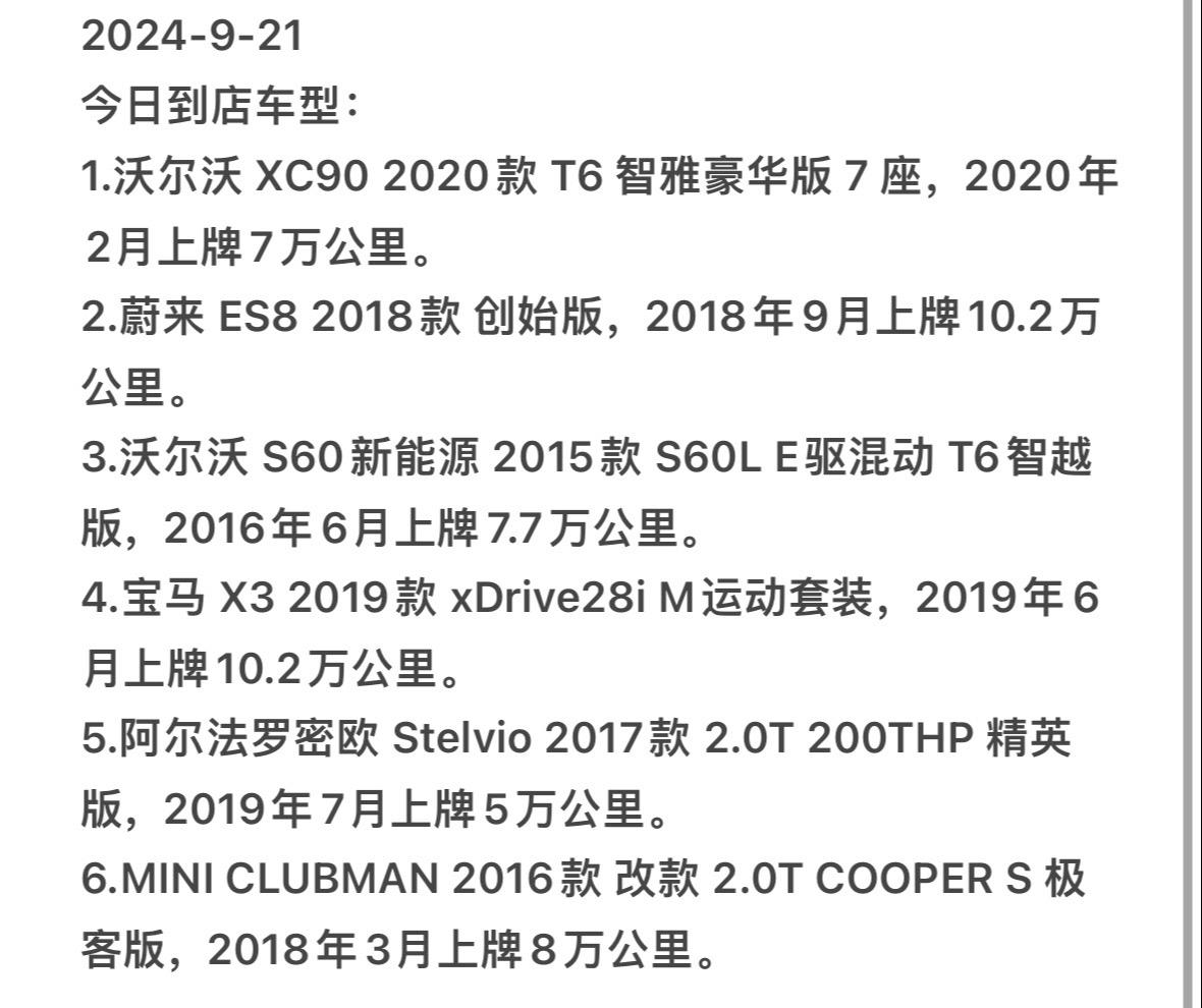 2024.9.21。今日最新到店车型,欢迎私信了解。