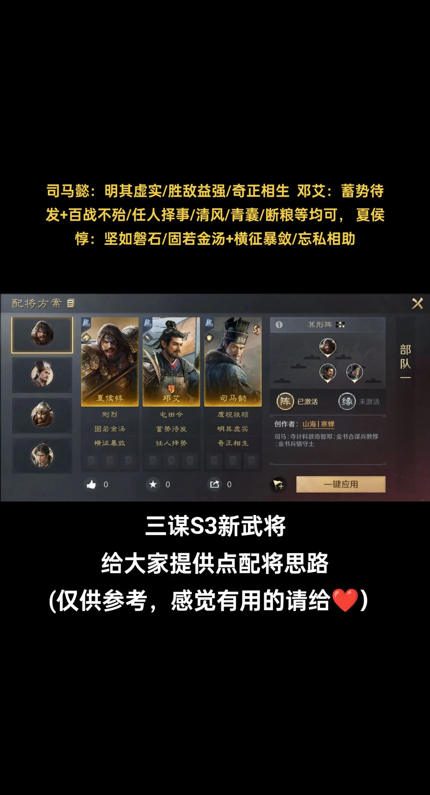 三国谋定天下S3赛季新武将初步队伍汇总(仅供参考,喜欢研究队伍的兄弟可...
