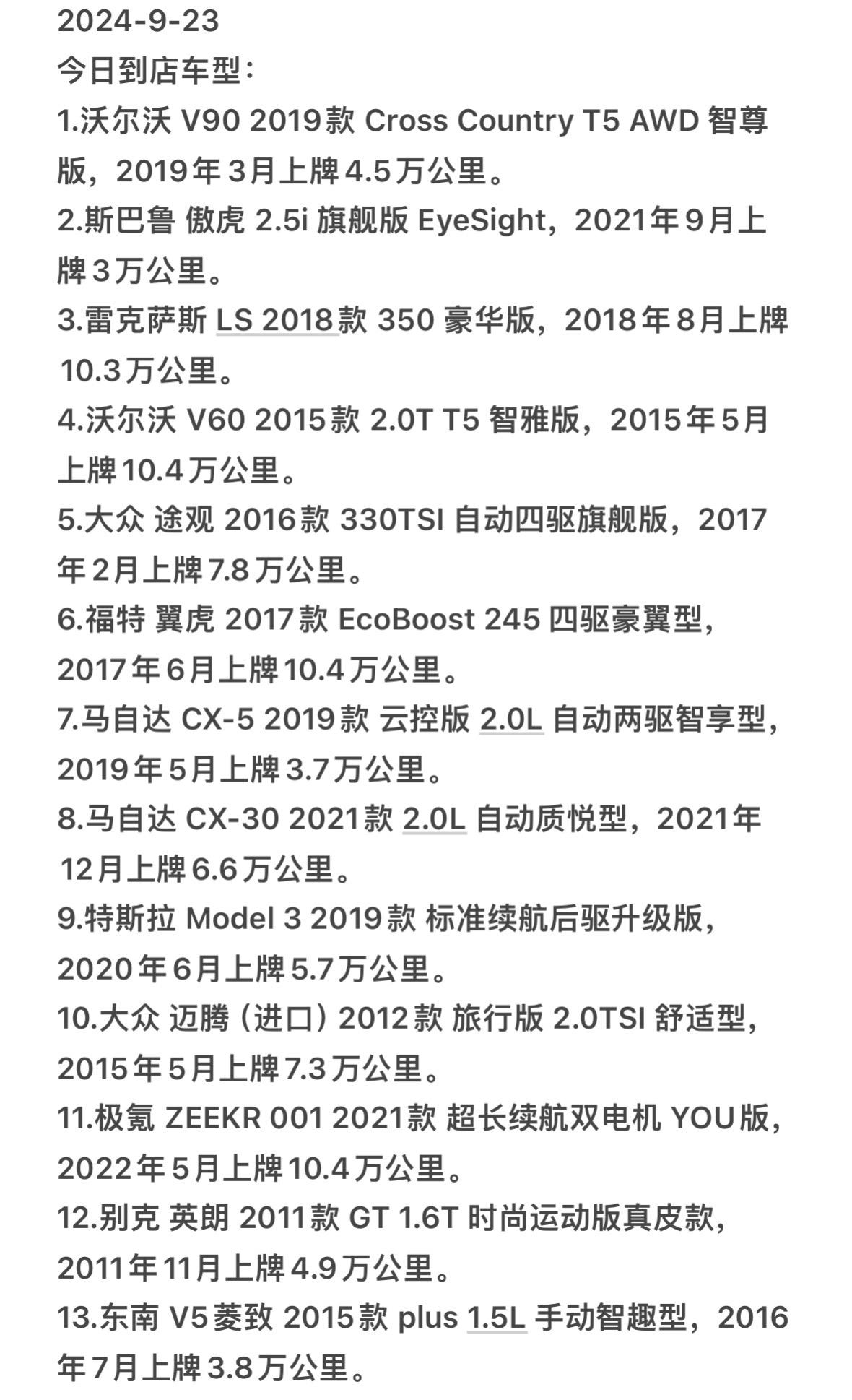 2024.9.29。今日最新上架车型,欢迎各位老板私信了解。