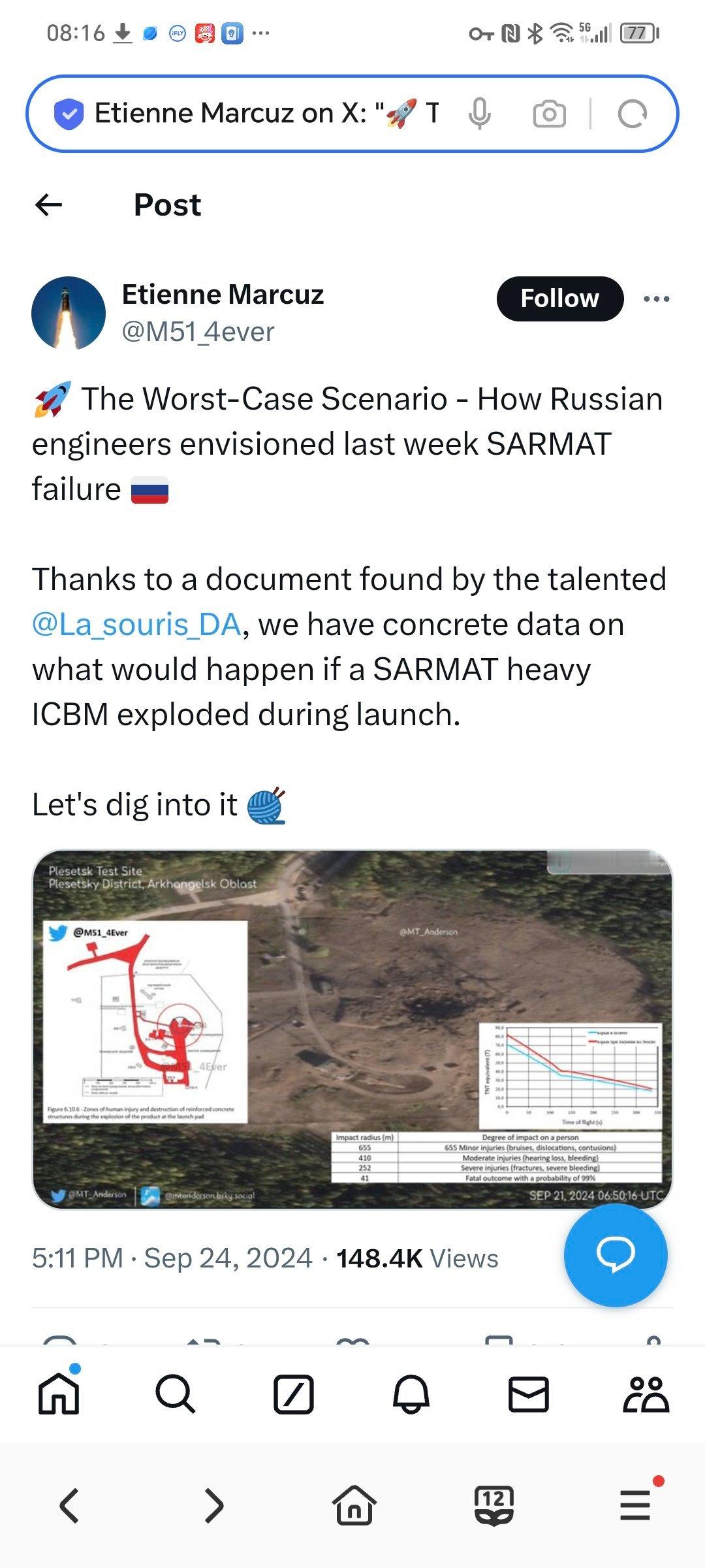 多亏天才的 souris DA 找到的一份文件,我们才有了关于“萨尔马特”重型洲际弹道导弹在发射过程中爆炸会发生什么的具体数据。