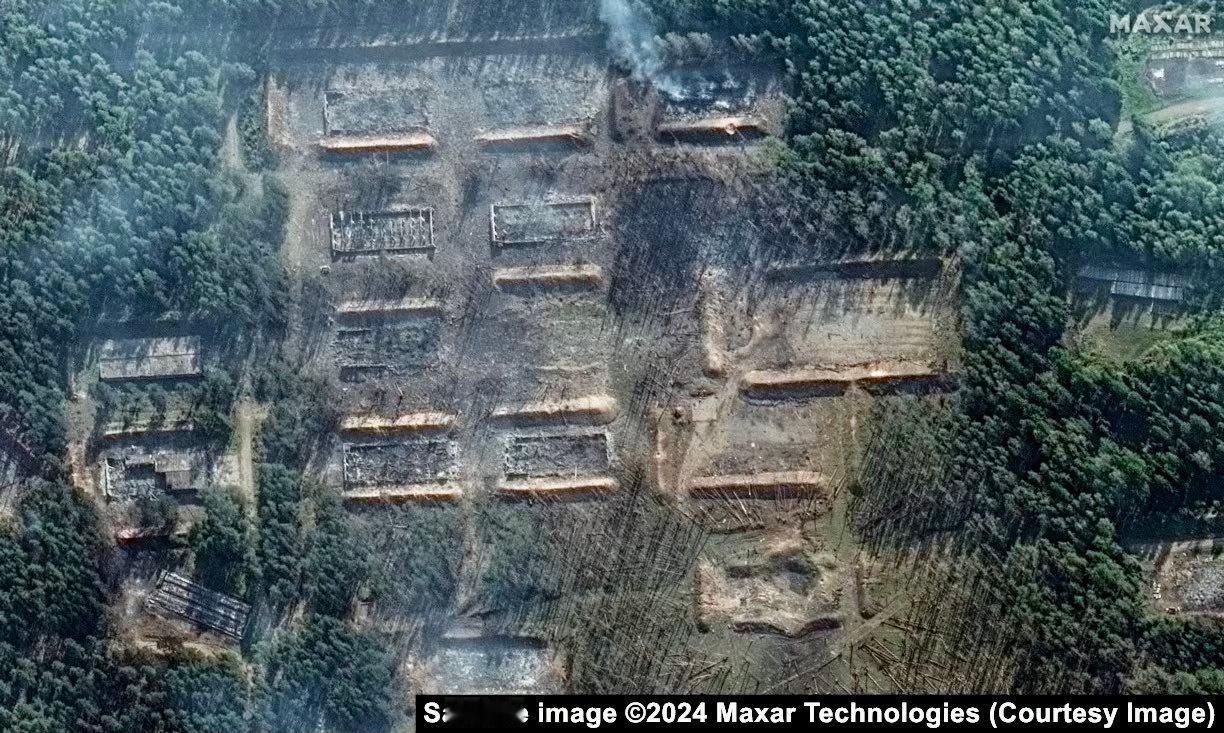 新的卫星图像显示,前线后方的俄罗斯军事基地遭到彻底破坏。