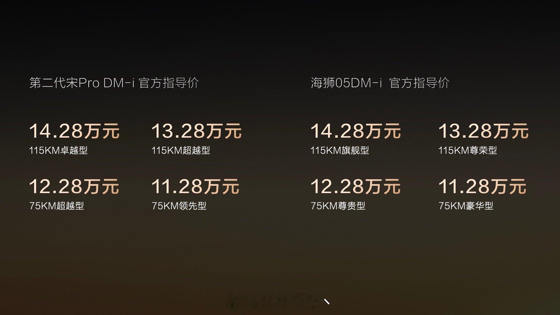 9月23日,搭载比亚迪第五代DM技术的海狮05DM-i及第二代宋Pro DM-i正式上市。作为比亚迪旗下首批搭载第五代DM技术的两款A级SUV,海狮05DM-i与第二代宋Pro DM-i同样拥有极其优秀的能耗表现,高达46.06%的发动机热效率、3.79L的超低百公里亏电油耗甚至比摩托车还低。作为来得刚刚好的国民SUV,海狮05DM-i及第二代宋Pro DM-i让中国消费者买得起、开得起。