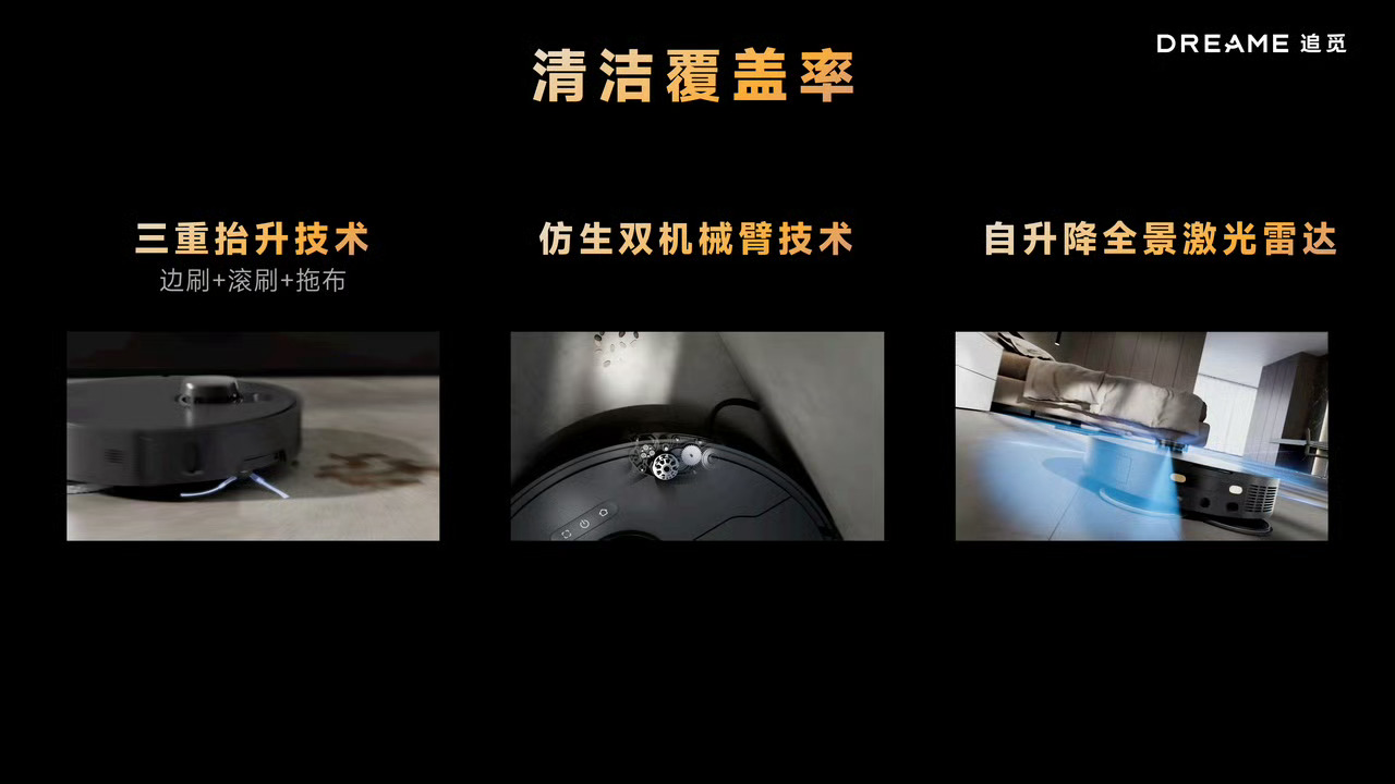 其实这么多新品里面,我最想要的还这个扫地机器人(追觅X50系列扫地机器人),除了定位、吸力、存污、自清洁等方面的各种加强外,还增加了扫刷的机械臂和支撑摆臂,这边让扫地机器人可清洁的地方更更细致,真算是解决了扫地机器人的痛点了(至少是解决了我的痛点)。
