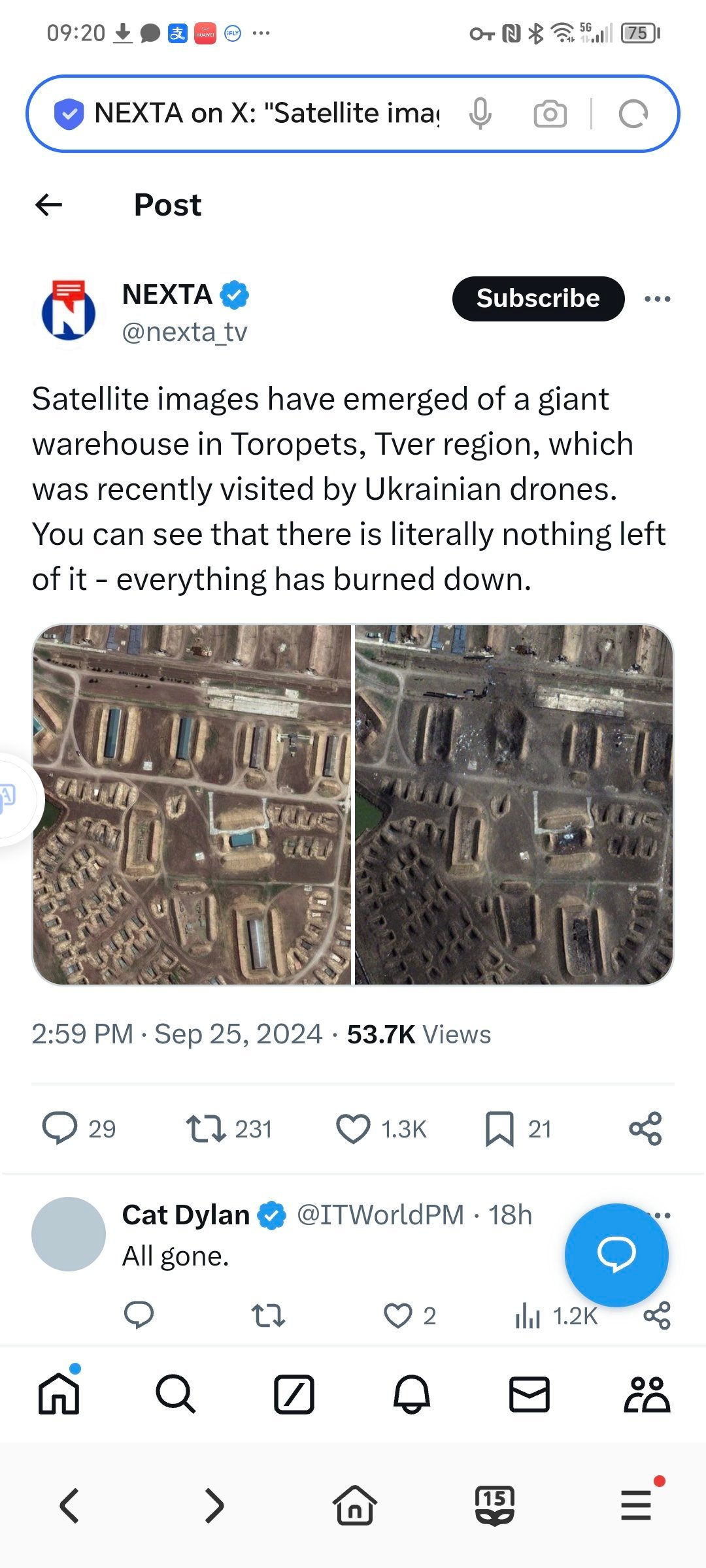 欧洲媒体:卫星图像显示,乌克兰无人机最近访问了特维尔地区托罗佩茨的一个巨型弹药仓库。您可以看到,那里简直什么都没有了--一切都被烧毁了。