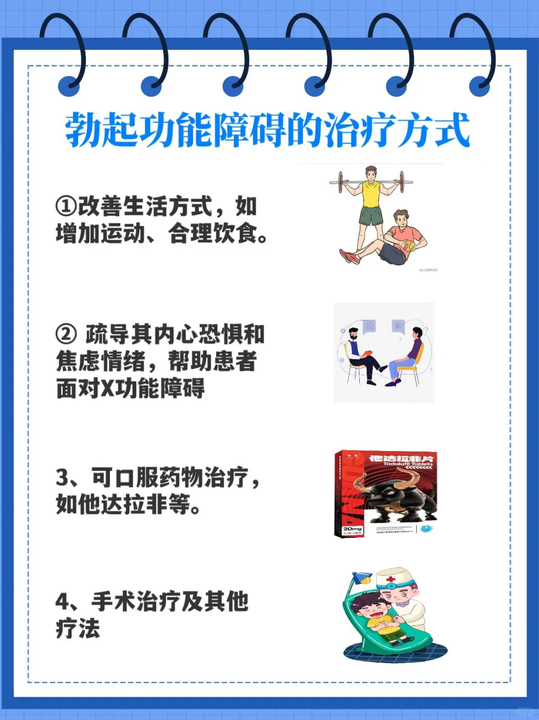 3、可口服药物治疗,如他达拉非、西地那非等。