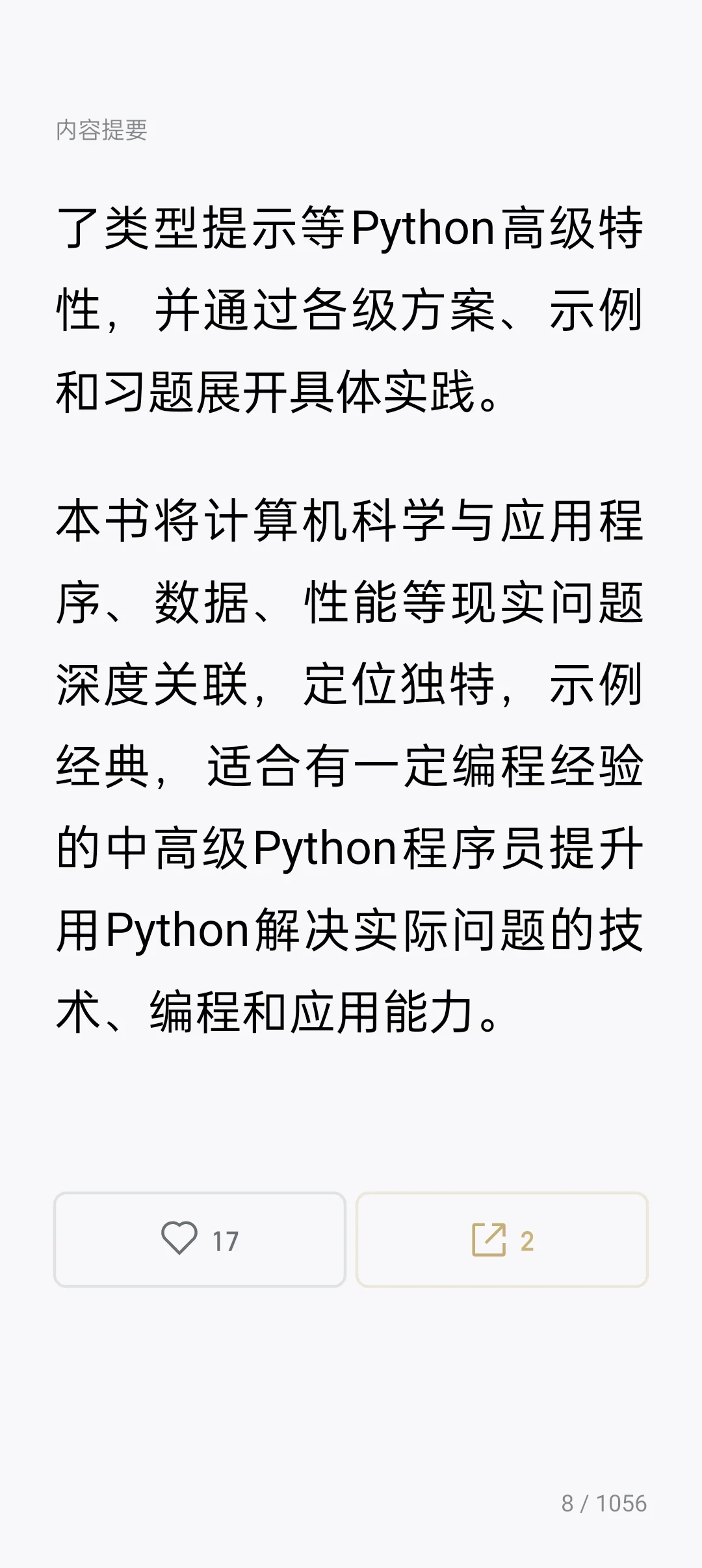 本书将计算机科学与应用程序、数据、性能等现实问题深度关联,定位独特,示例经典,适合有一定编程经验的中高级Python程序员提升用Python解决实际问题的技术、编程和应用能力。