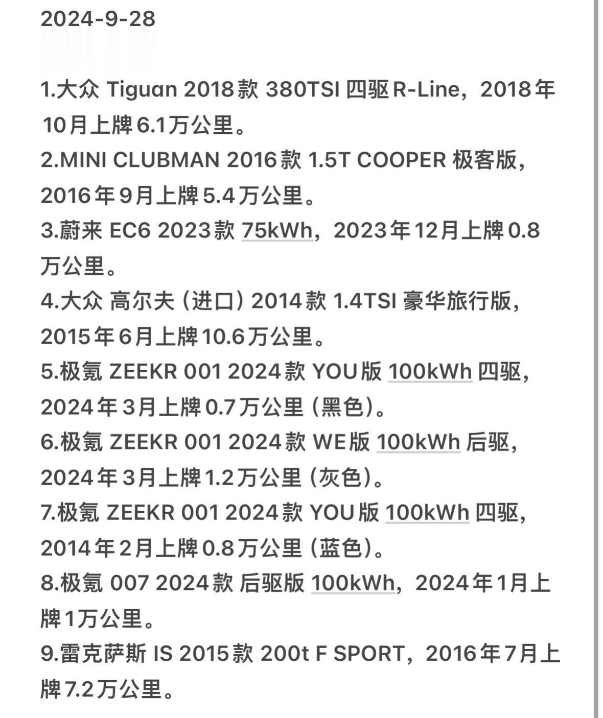 2024.9.29。今日最新上架车型,欢迎各位老板私信了解。
